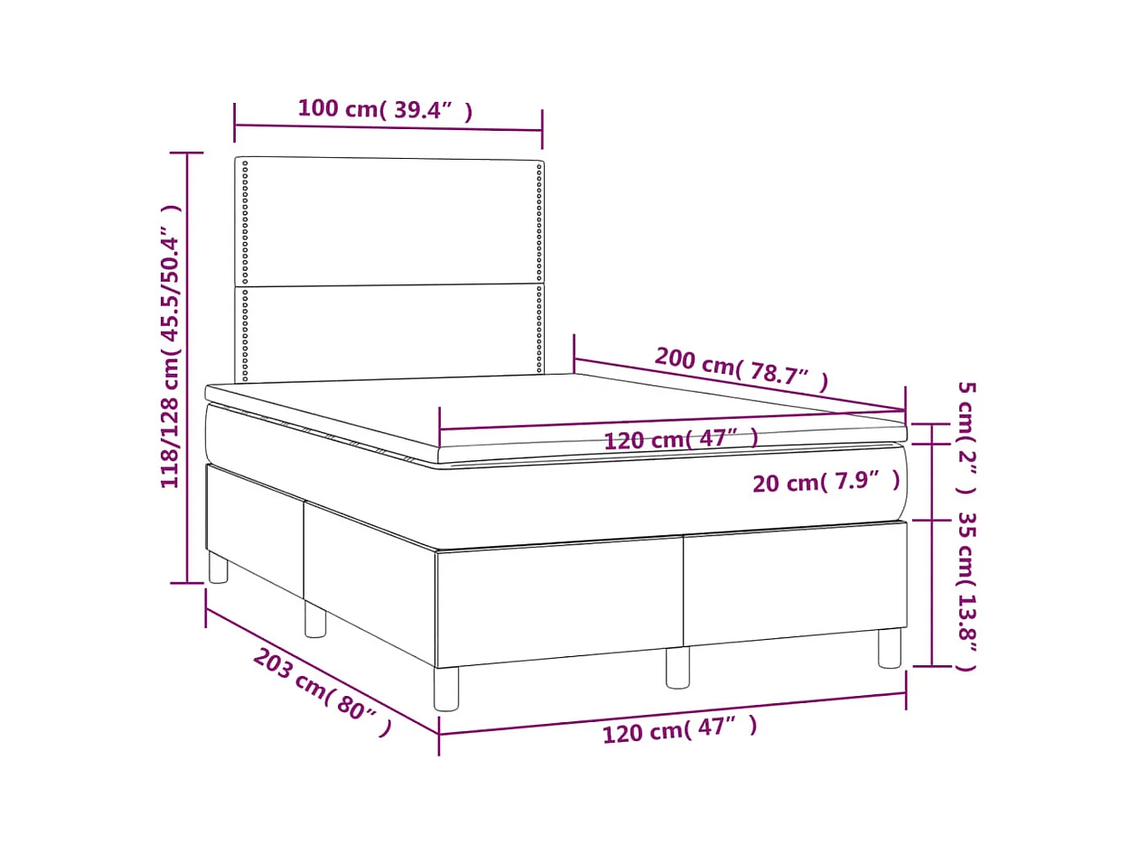 Boxspring met matras en LED stof donkerbruin 120x200 cm