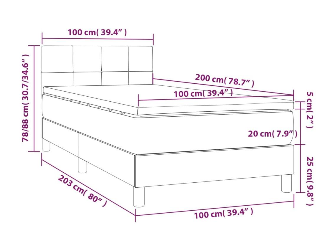 Boxspring met matras en LED stof donkergrijs 100x200 cm