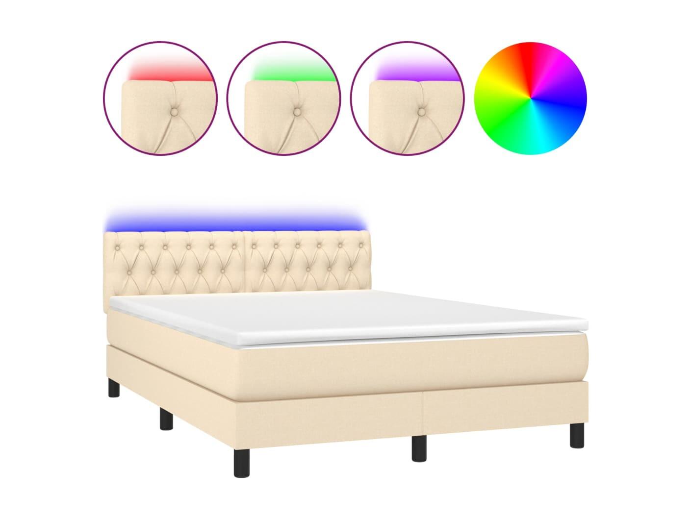 Boxspring met matras en LED stof crèmekleurig 140x200 cm