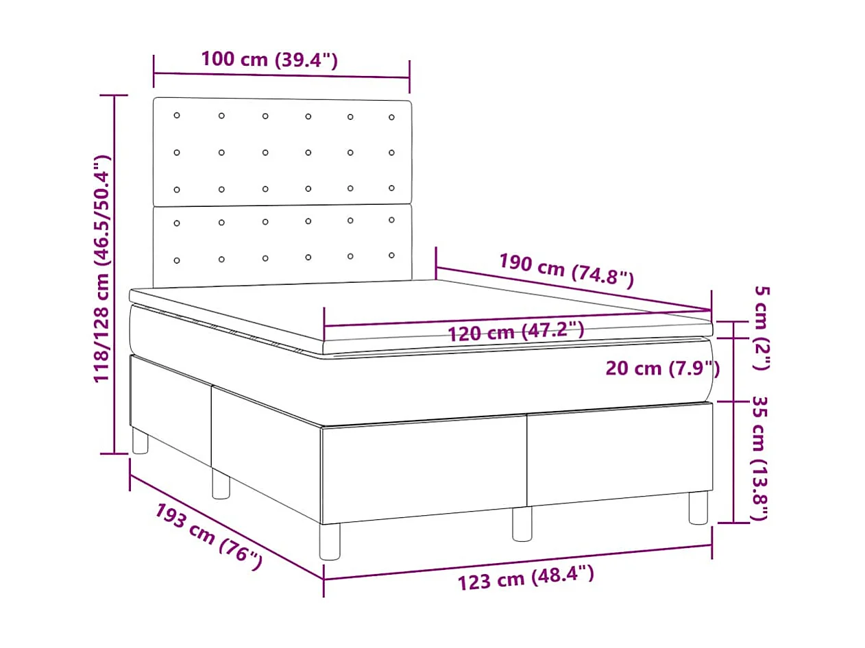 Boxspring met matras en LED stof donkerbruin 120x190 cm