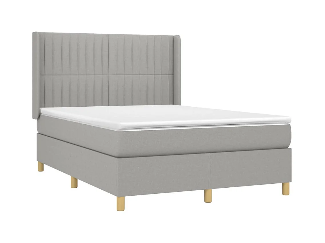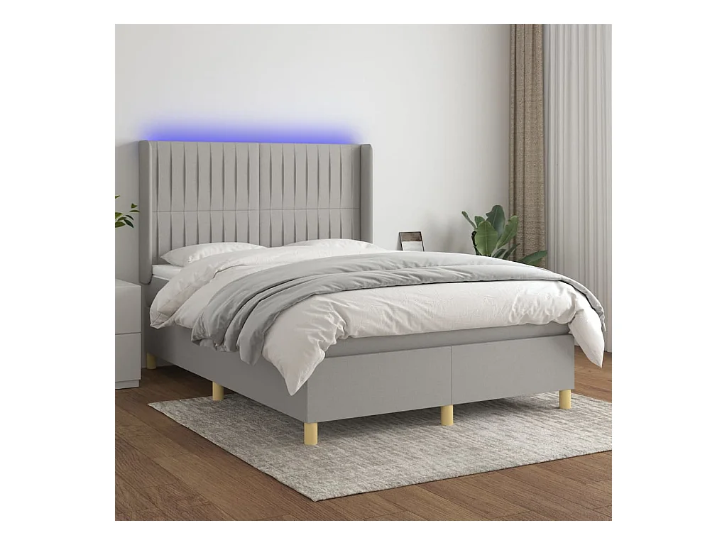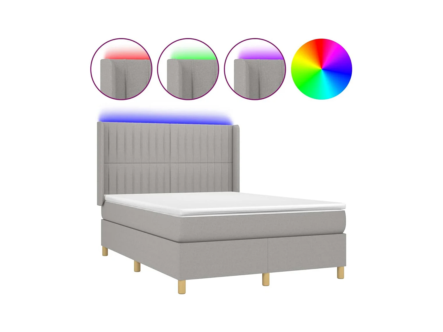 Boxspring met matras en LED stof lichtgrijs 140x190 cm