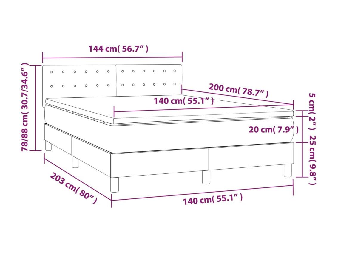 Boxspring met matras en LED stof donkerbruin 140x200 cm