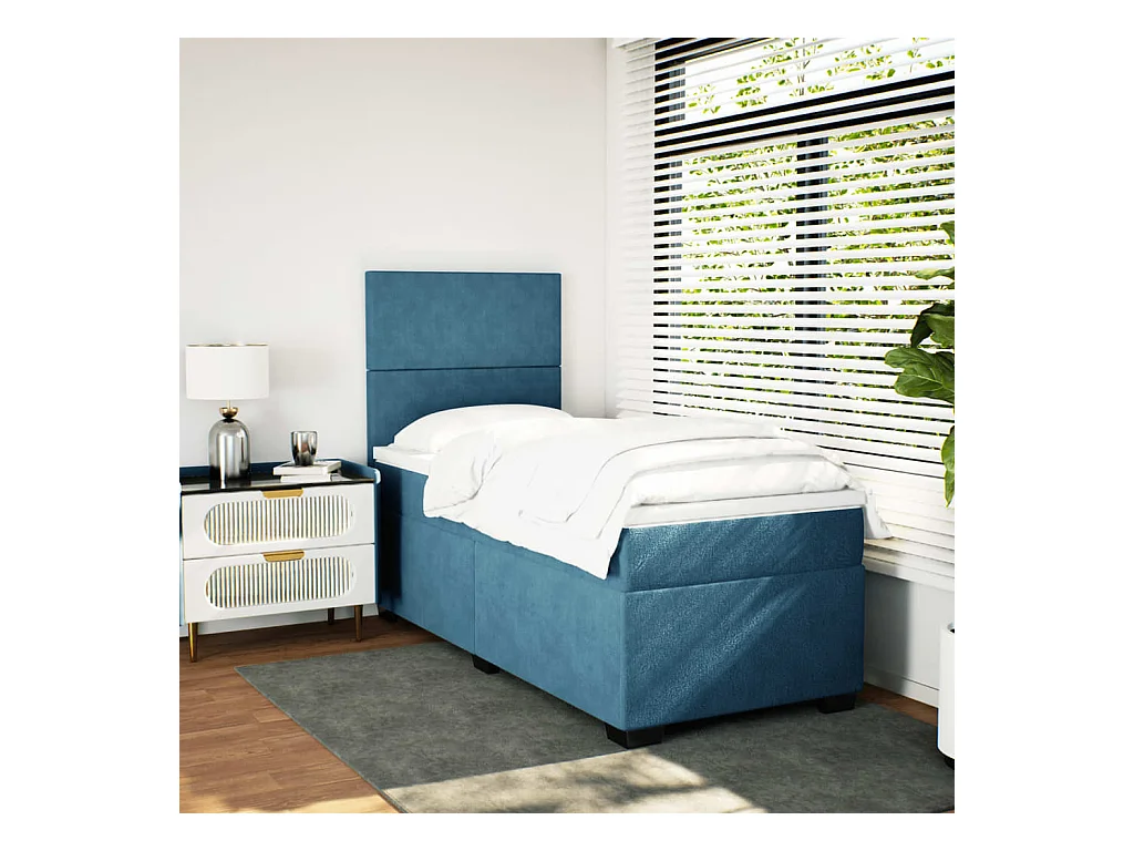 Boxspring met matras fluweel blauw 90x200 cm