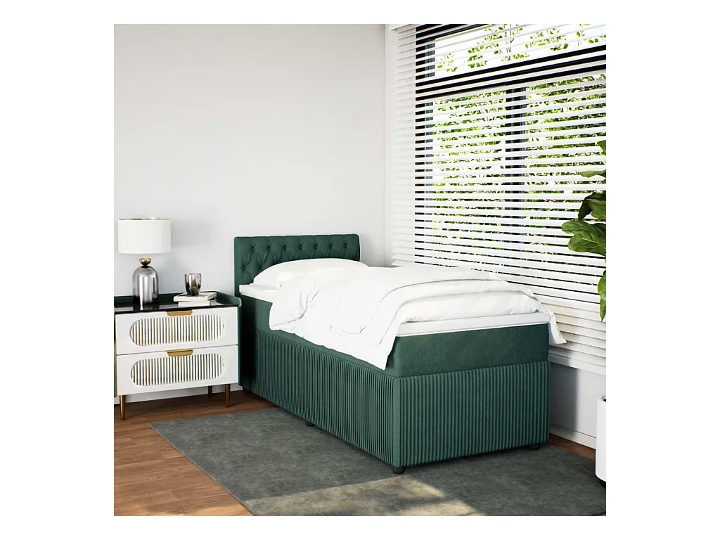 Boxspring met matras fluweel donkergroen 90x200 cm