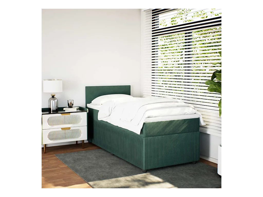Boxspring met matras fluweel donkergroen 90x200 cm