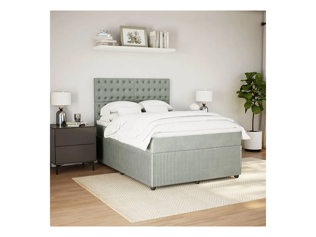 Boxspring met matras stof lichtgrijs 140x200 cm