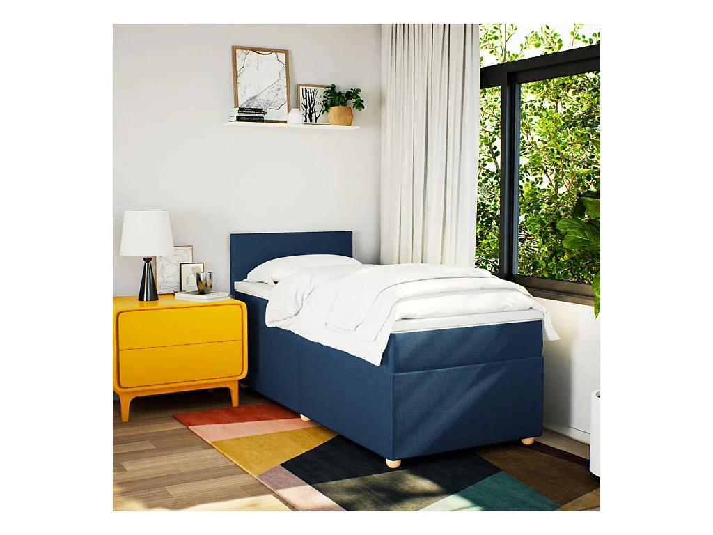 Boxspring met matras stof blauw 90x200 cm