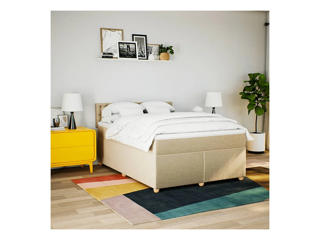 Boxspring met matras stof crèmekleurig 160x200 cm