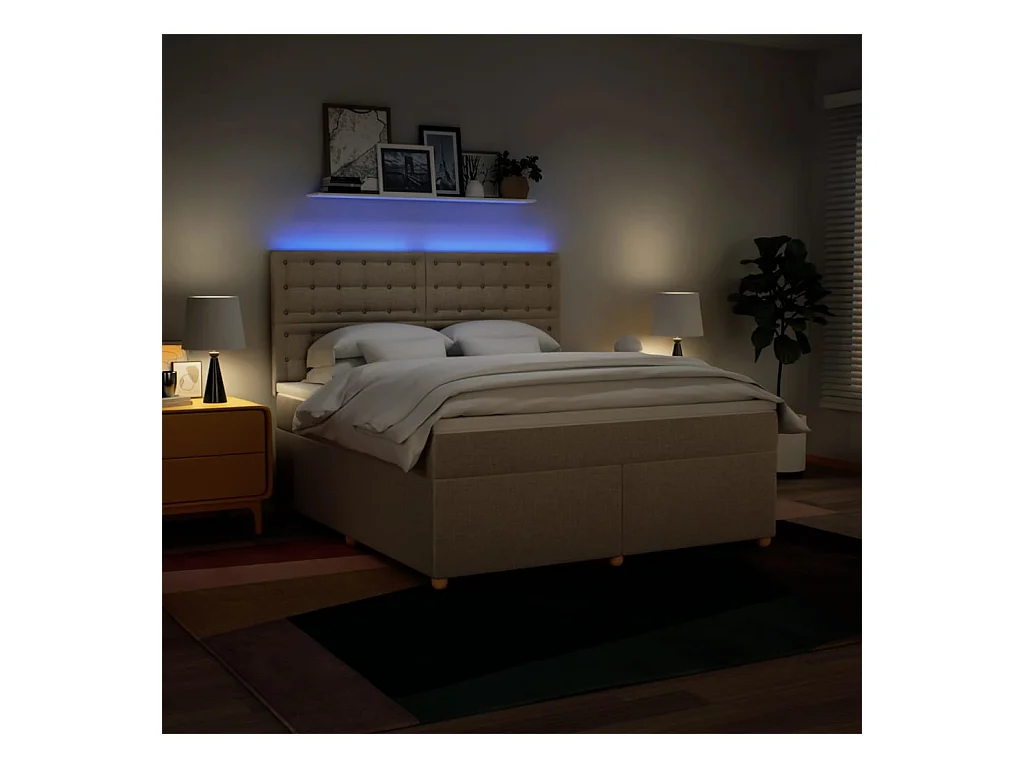 Boxspring met matras en LED stof crèmekleurig 180x200 cm