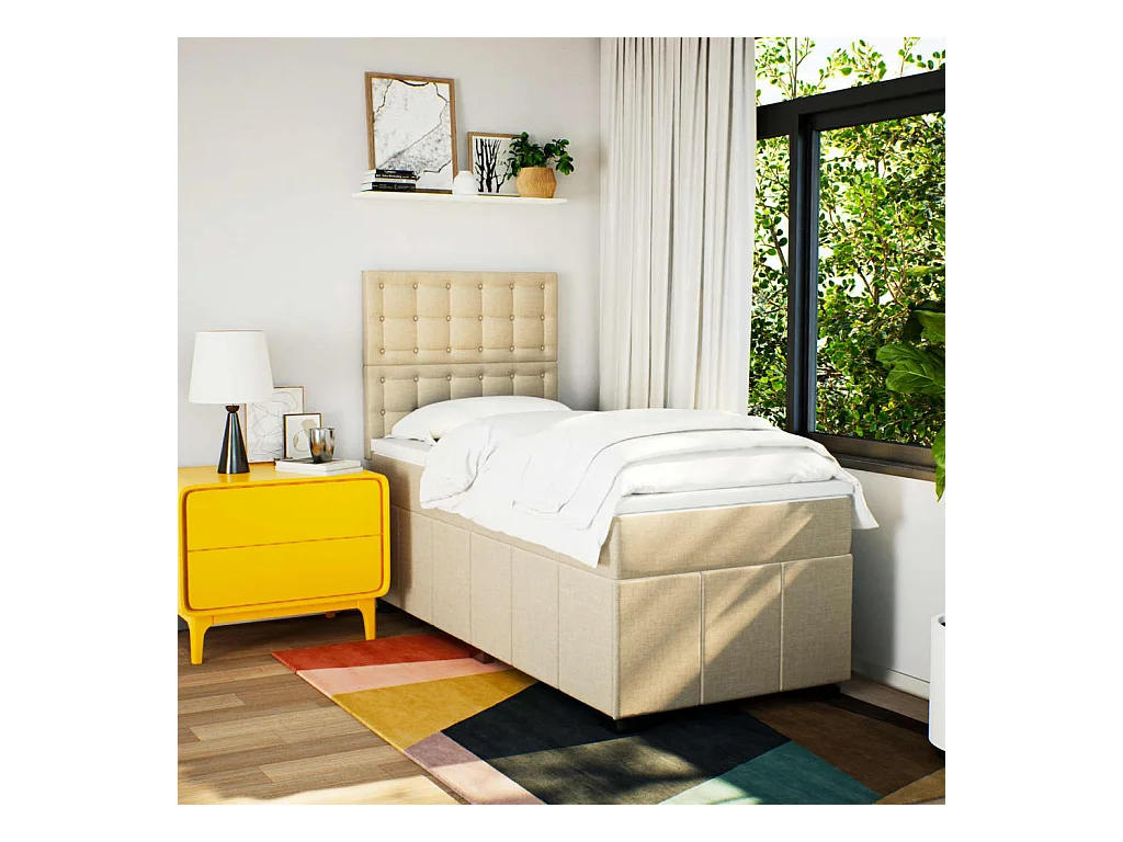 Boxspring met matras stof crèmekleurig 100x200 cm