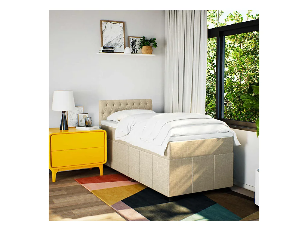 Boxspring met matras stof crèmekleurig 90x200 cm