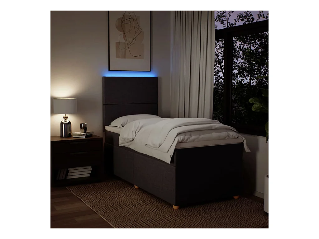Bed poef met matras en LED's 90x200 cm stof donkerbruin
