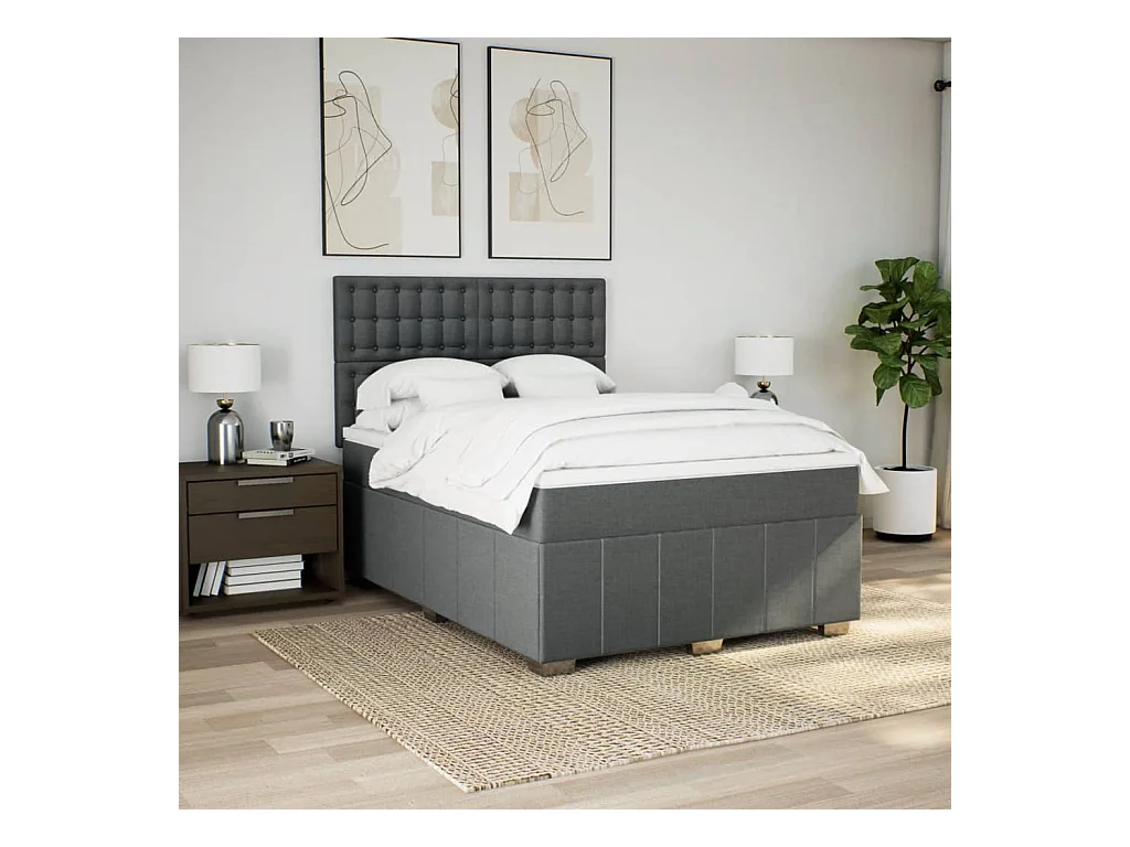 Boxspring met matras stof donkergrijs 160x200 cm