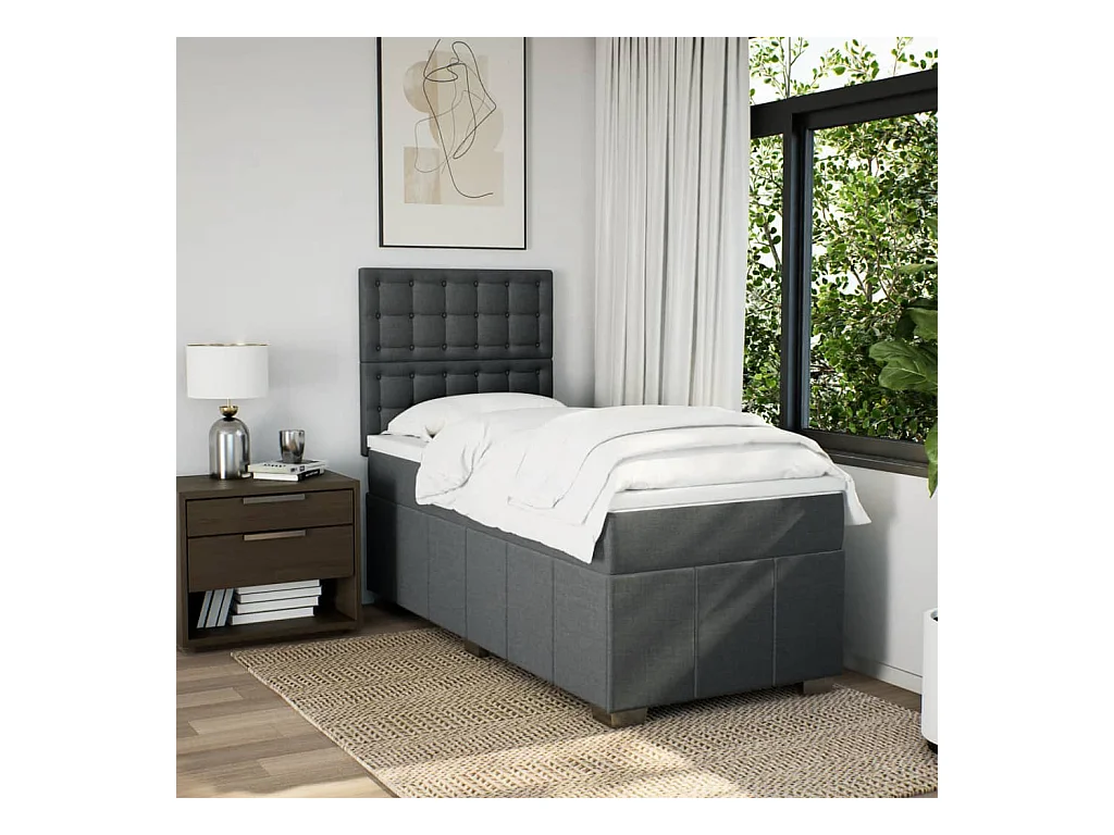 Boxspring met matras stof donkergrijs 90x190 cm