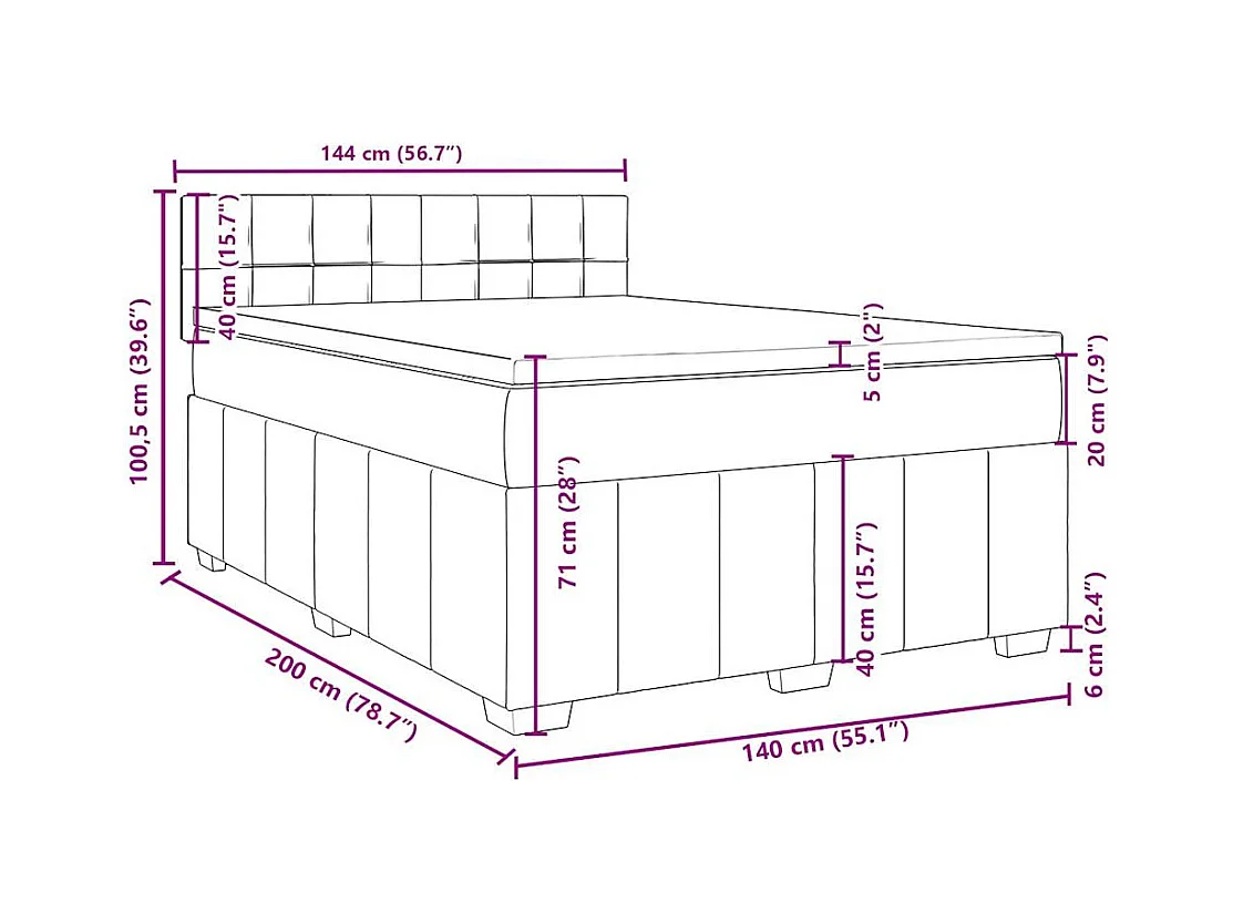 Boxspring met matras stof lichtgrijs 140x200 cm