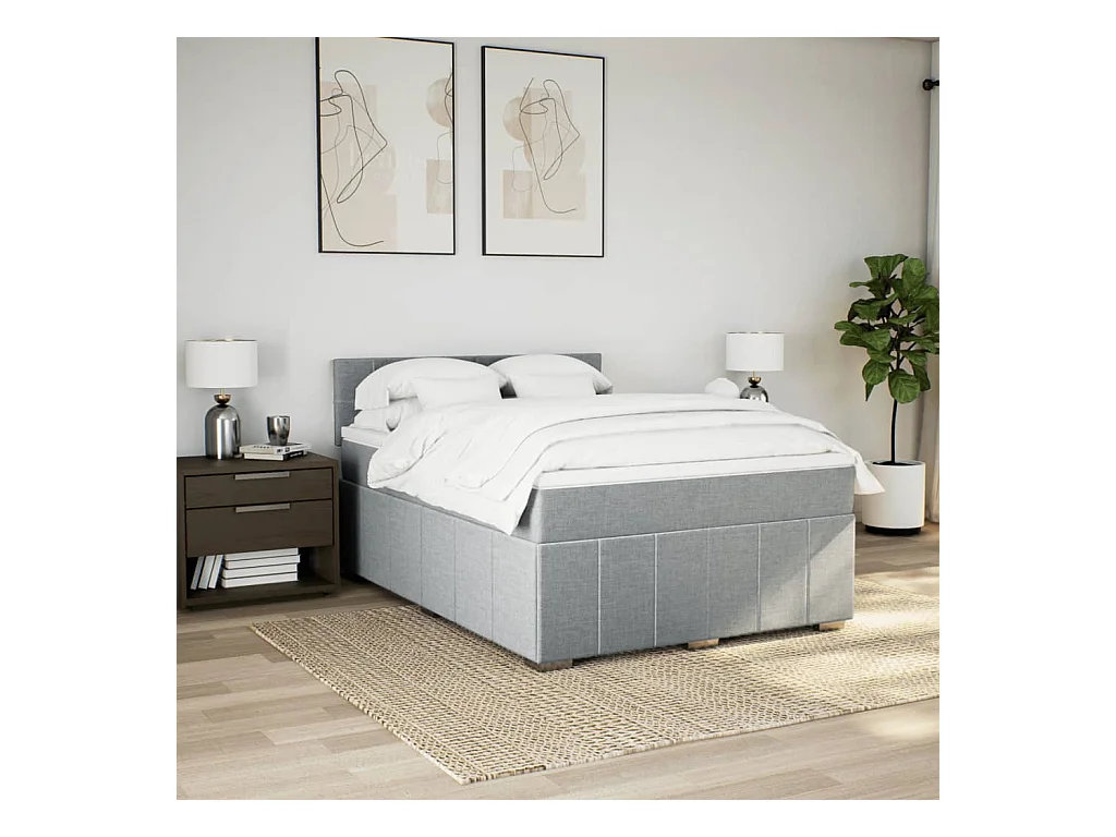 Boxspring met matras stof lichtgrijs 140x200 cm