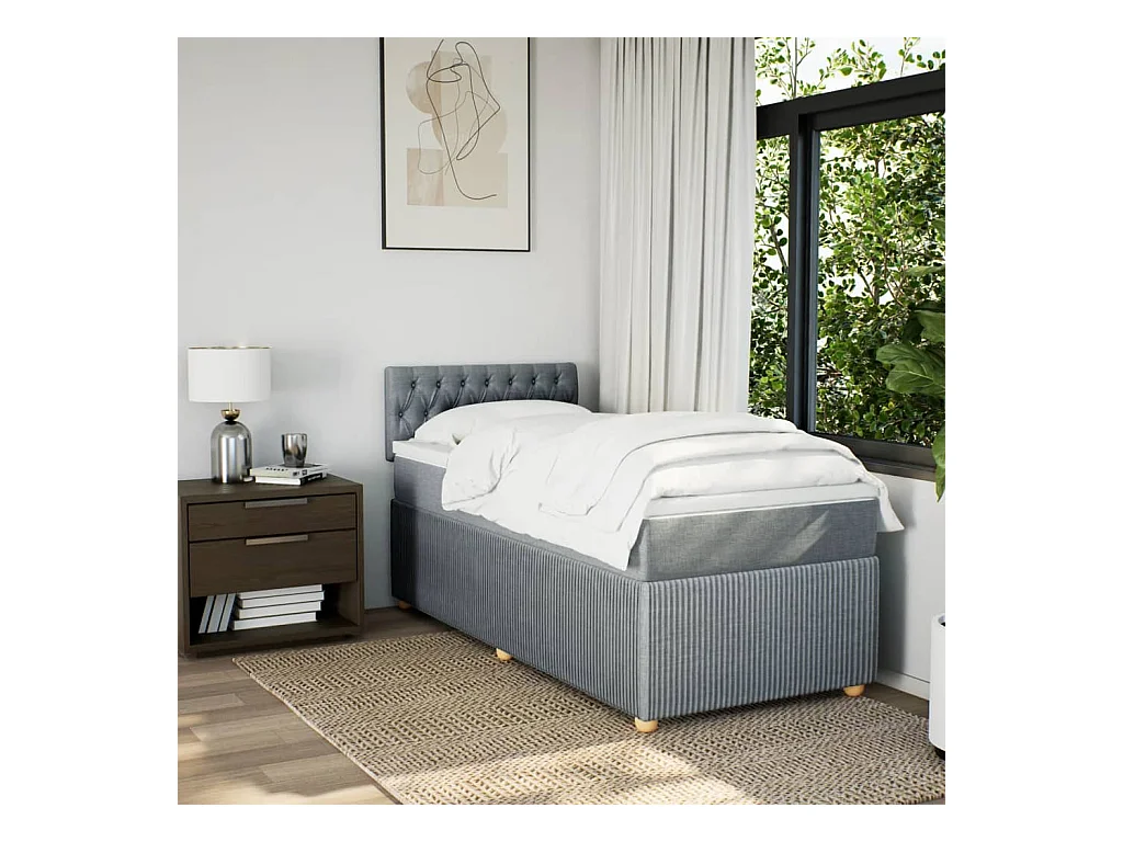 Boxspring met matras stof lichtgrijs 90x200 cm