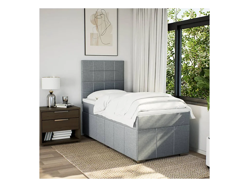 Boxspring met matras stof lichtgrijs 90x200 cm