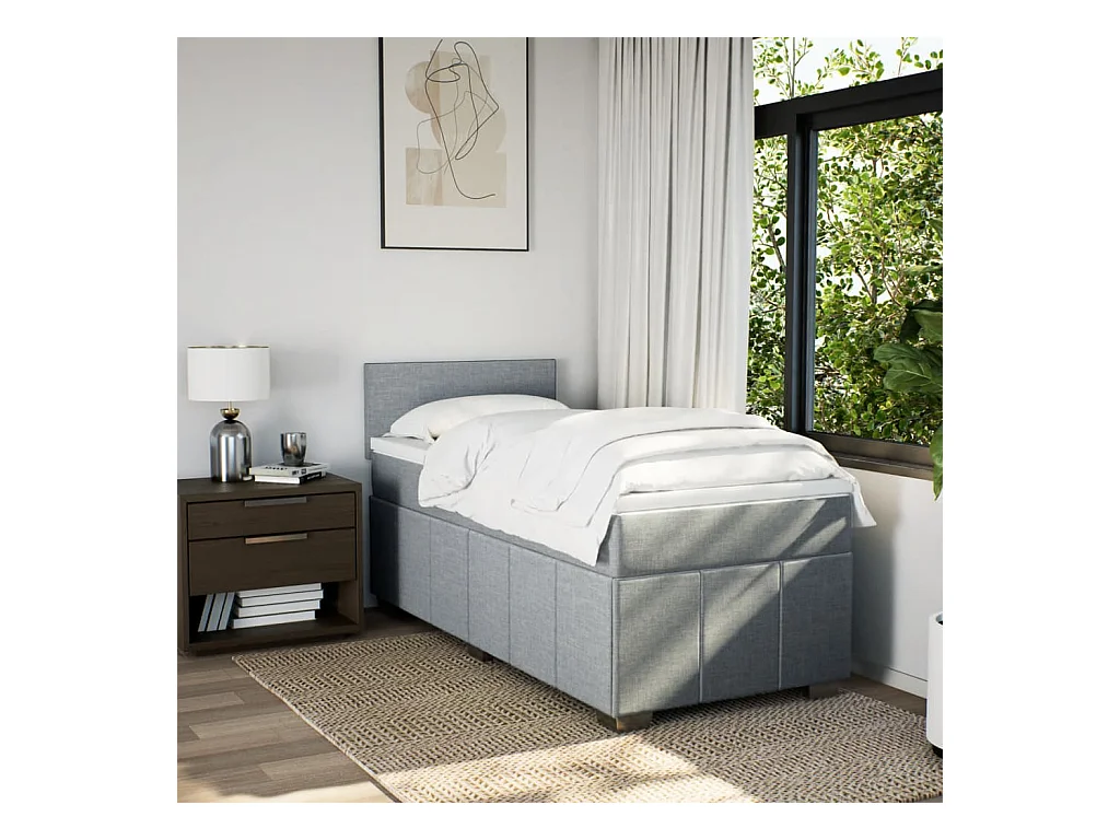 Boxspring met matras stof lichtgrijs 90x200 cm