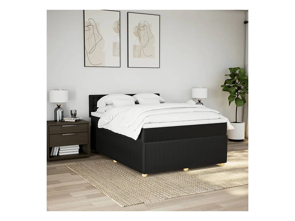 Boxspring met matras stof zwart 140x190 cm