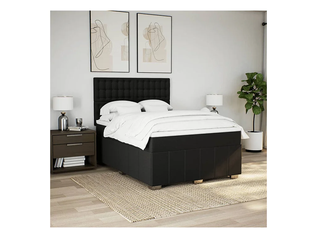 Boxspring met matras stof zwart 140x200 cm