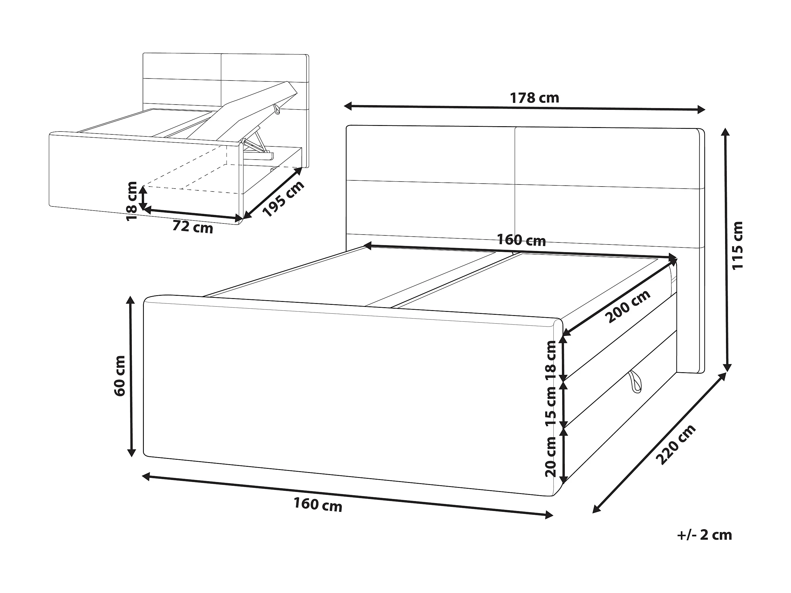 Boxspring met opbergruimte Stof ARISTOCRAT 160 x 200 cm Lichtgrijs
