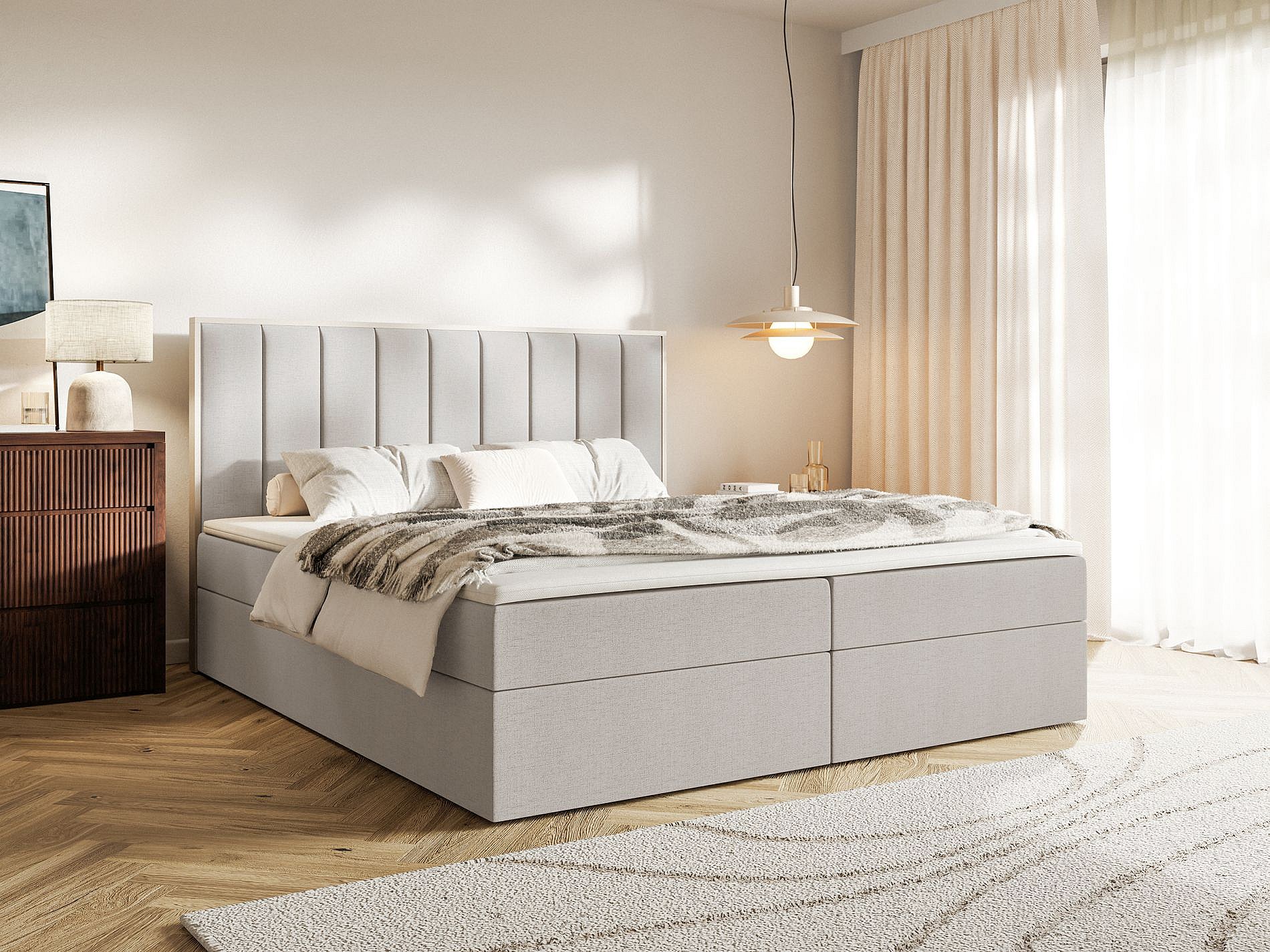 Boxspringbed 140x200 – opbergruimte en topper – hydrofobe chenille – grijsbeige – TOGENTS