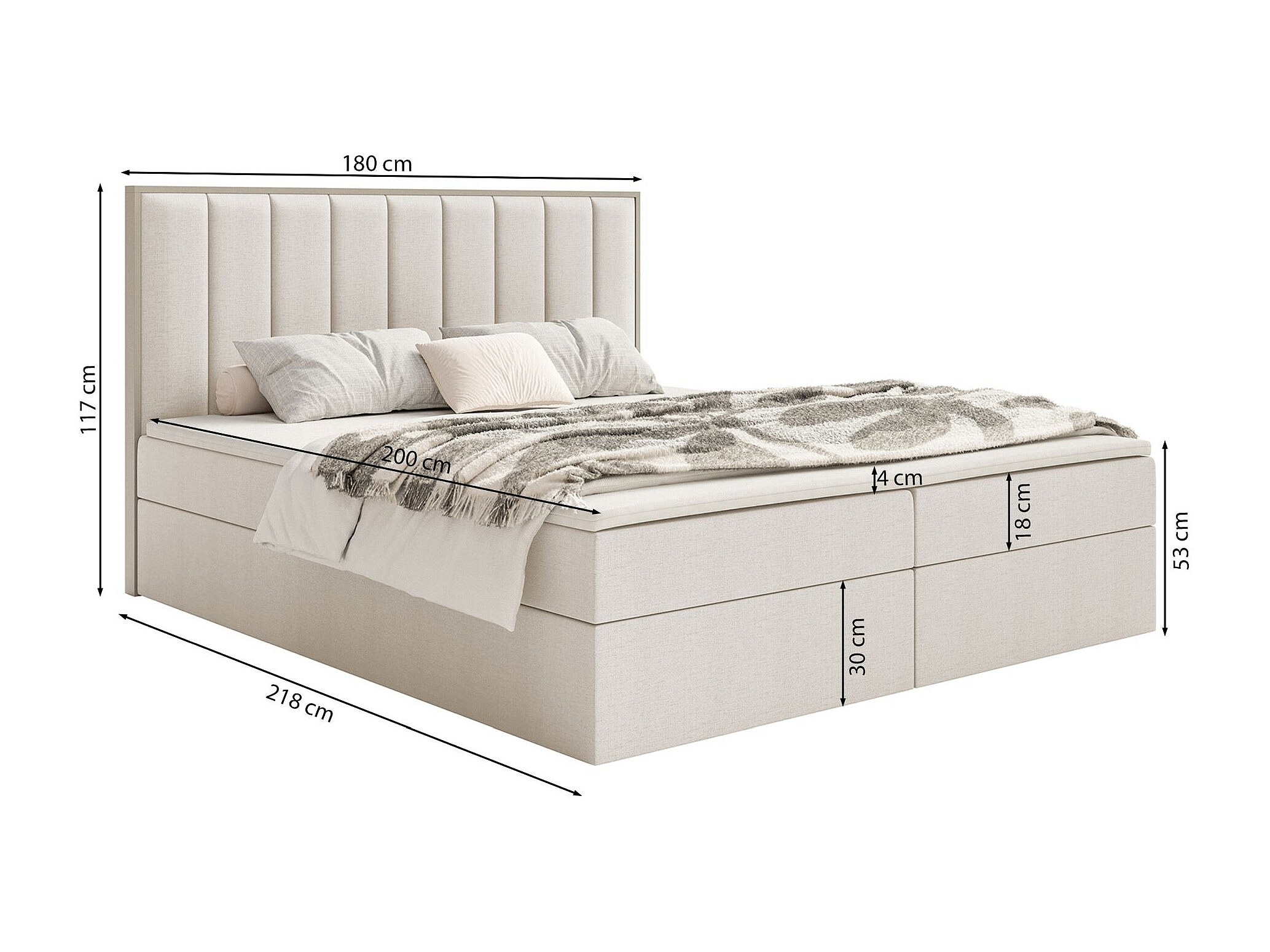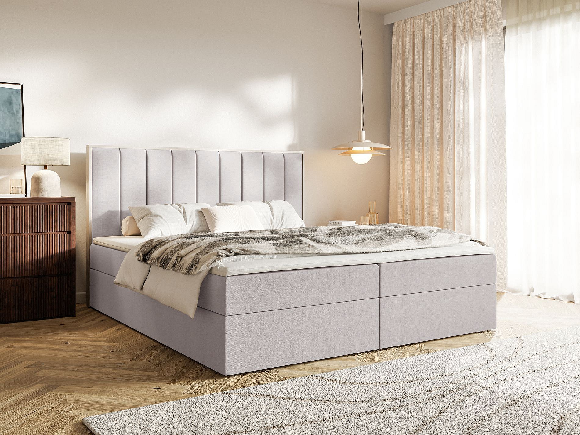 Boxspringbed 180x200 – opbergruimte en topper – hydrofobe chenille – grijs – TOGENTS
