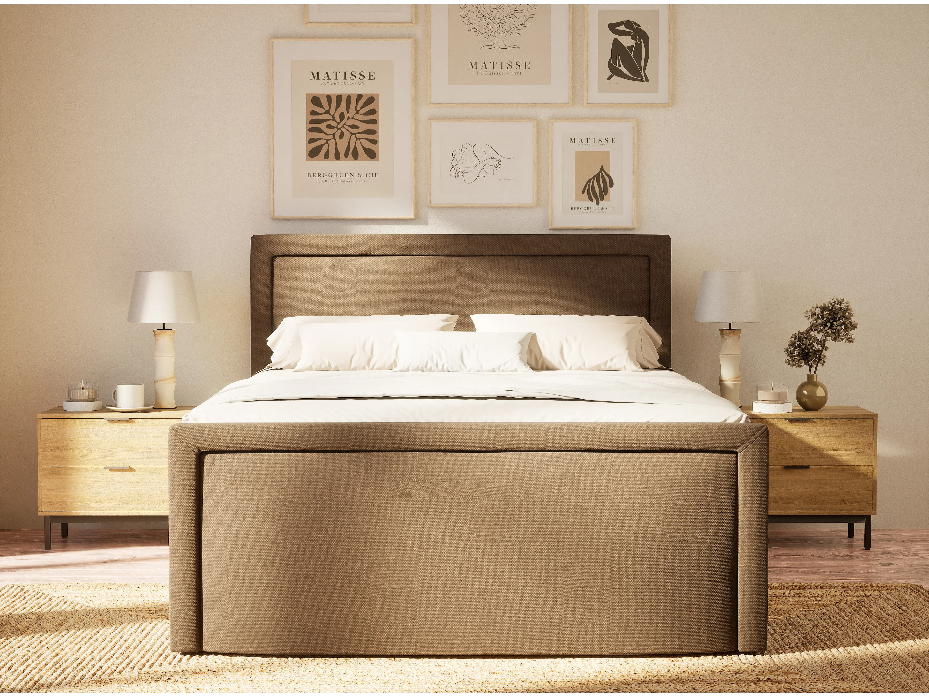 Boxspringbed met hoofdbord + matras + dekmatras - 200x200 cm - bruin - FRESCO