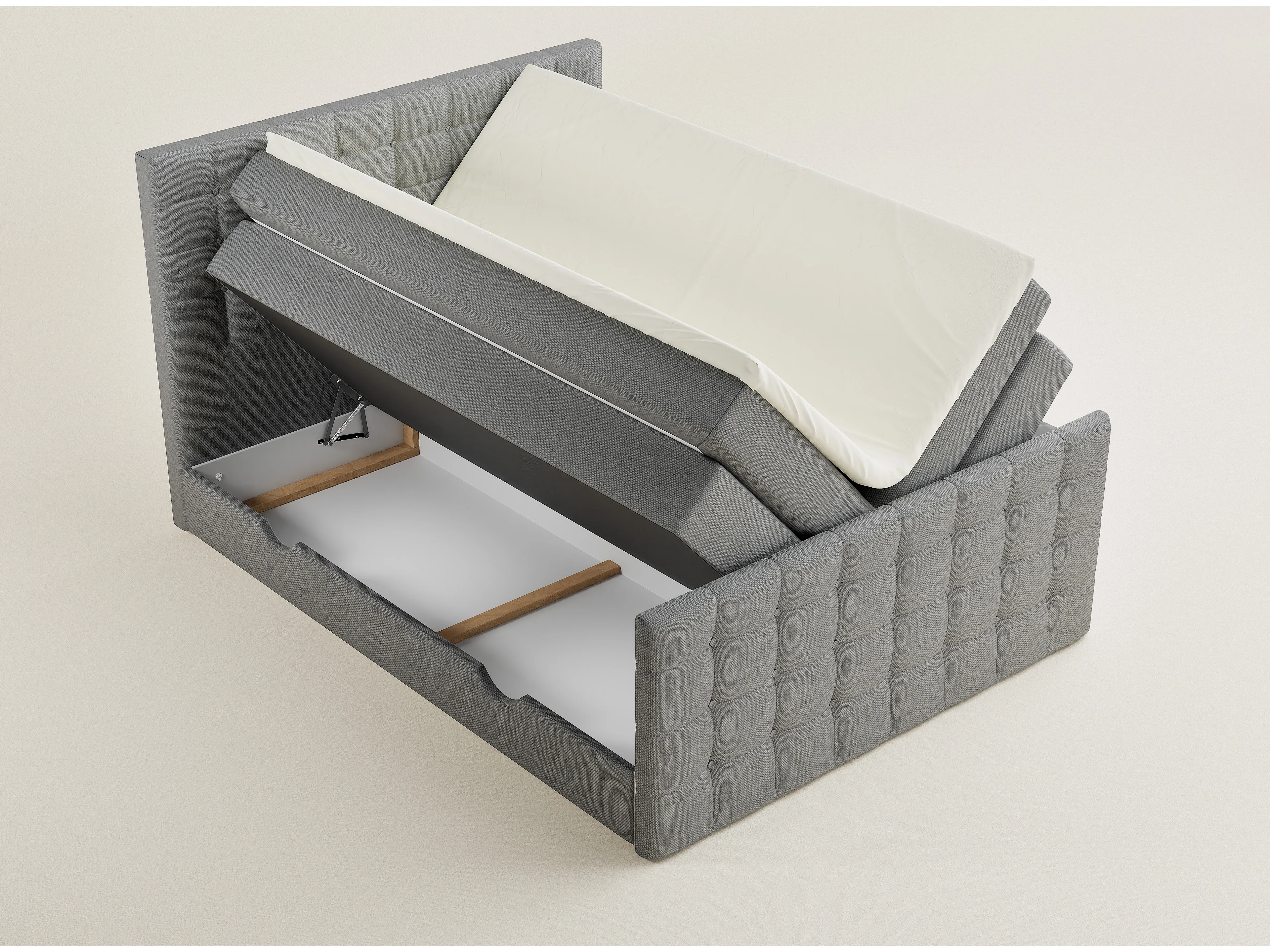 Boxspringbed met hoofdbord + matras + dekmatras - 200x200 cm - grijs - TASCA