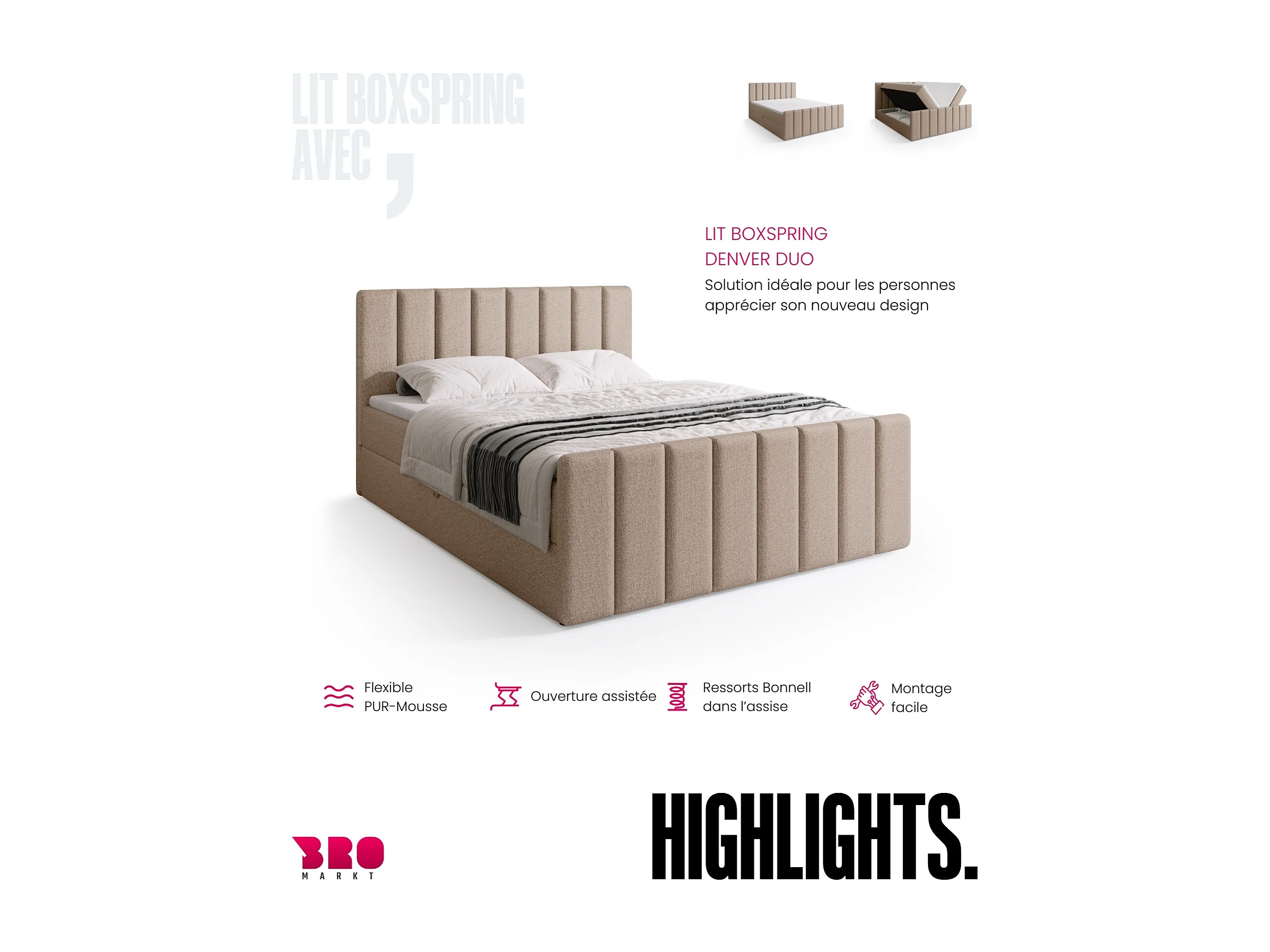Boxspringbed met hoofdeinde, matras en dekmatras - DENVER DUO - 160x200 - crème