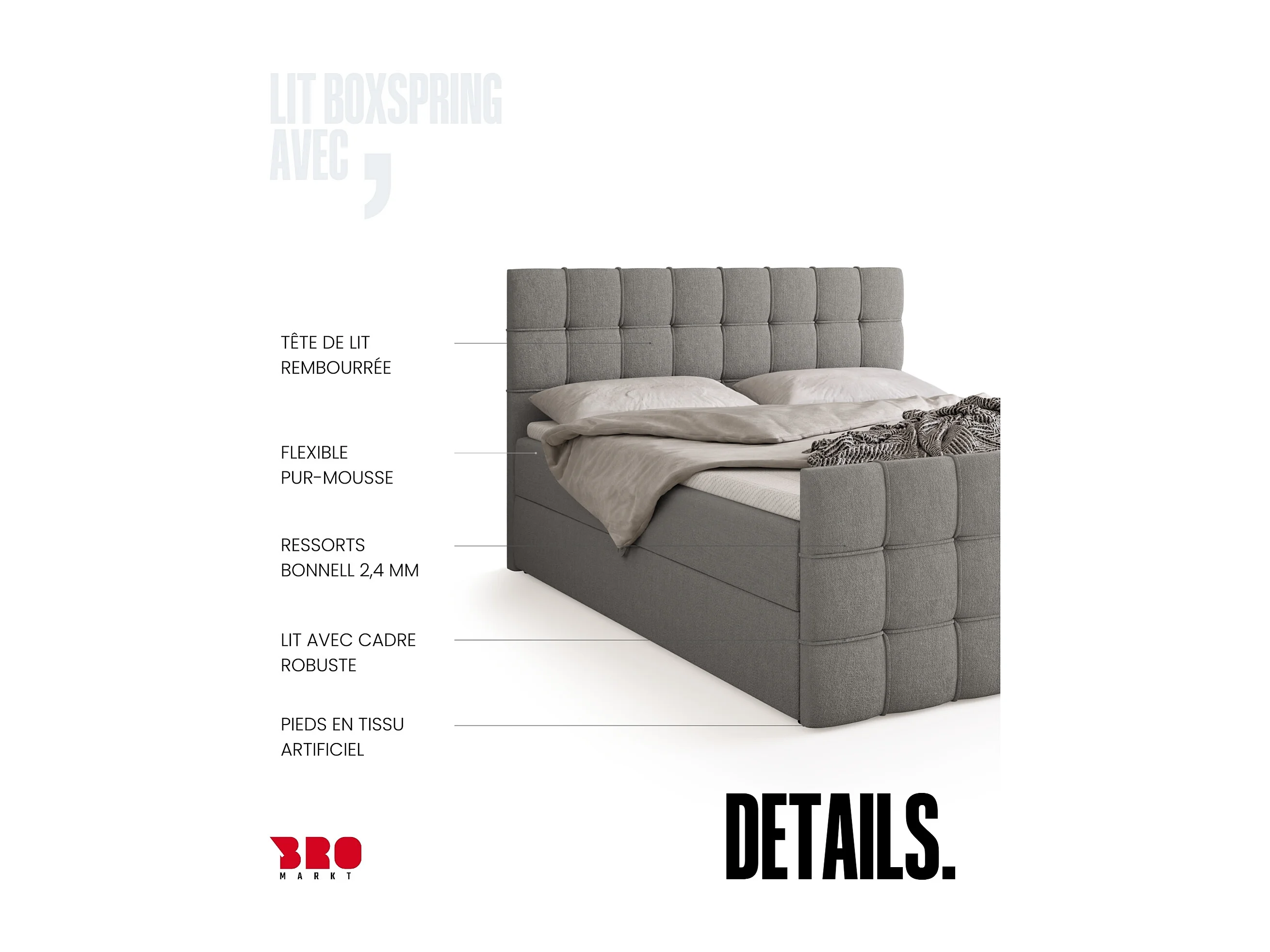 Boxspringbed met hoofdeinde, matras en dekmatras - DETROIT DUO - 180x200 - grijs