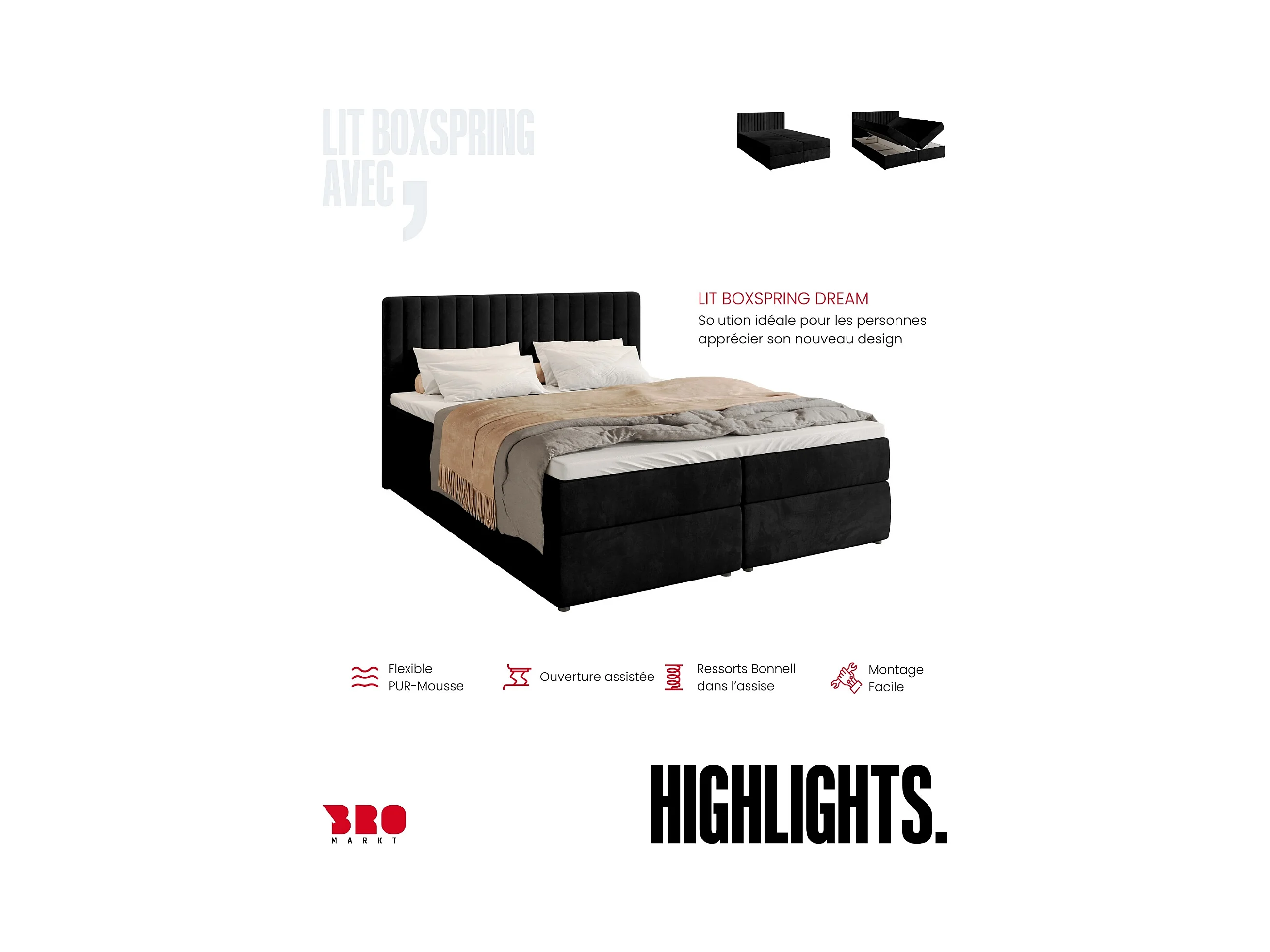 Boxspringbed met hoofdeinde, matras en dekmatras - DREAM - 180x200 - zwart