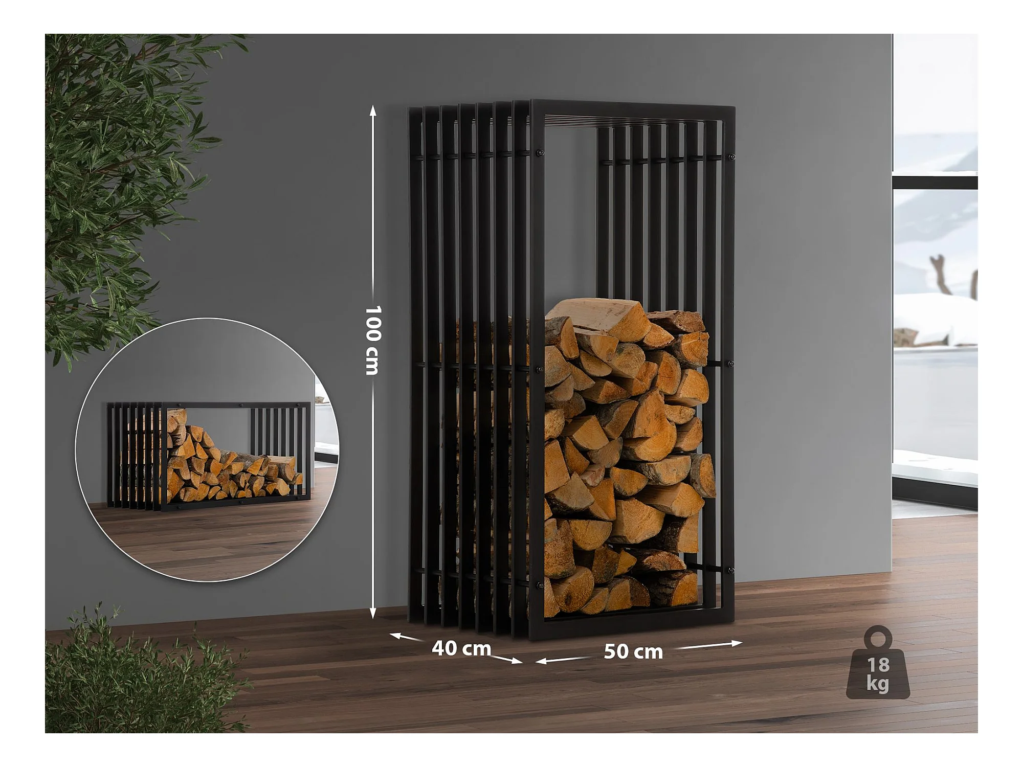 Brandhoutrek - Metalen - 50 x 40 x 150cm - mat zwart - Irving