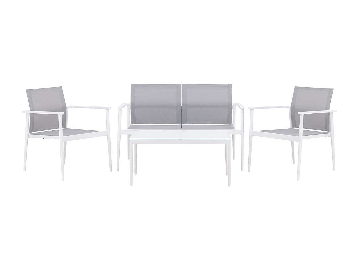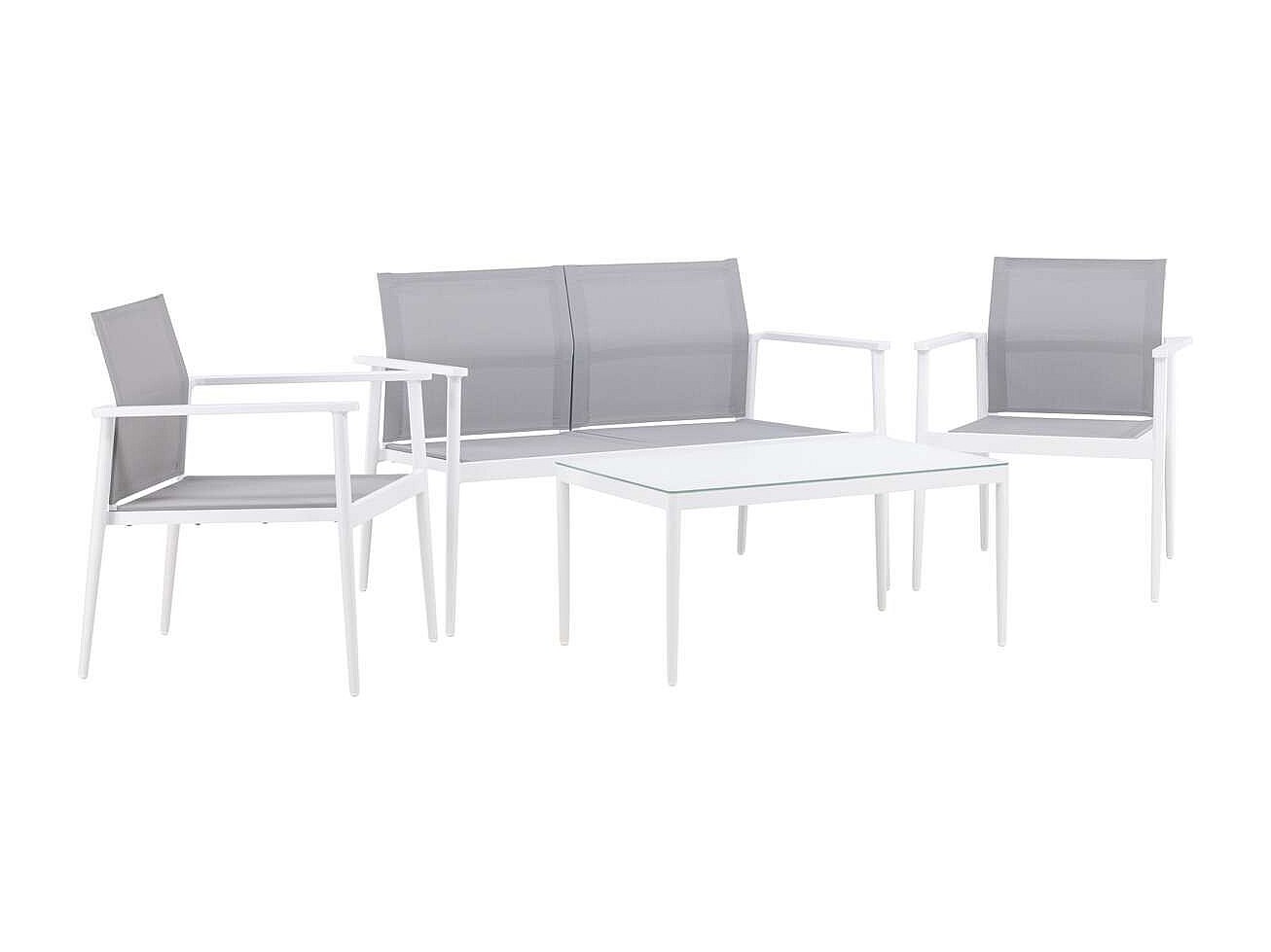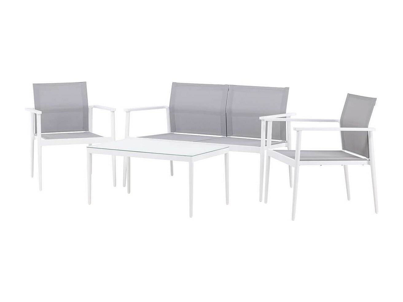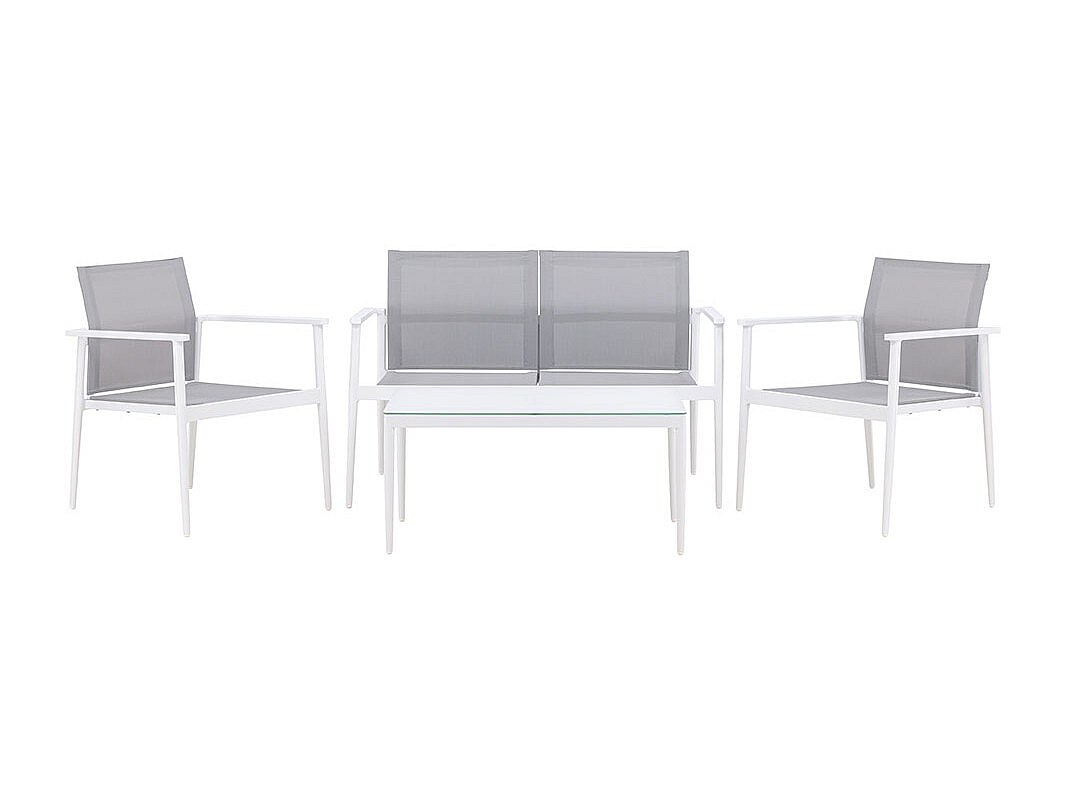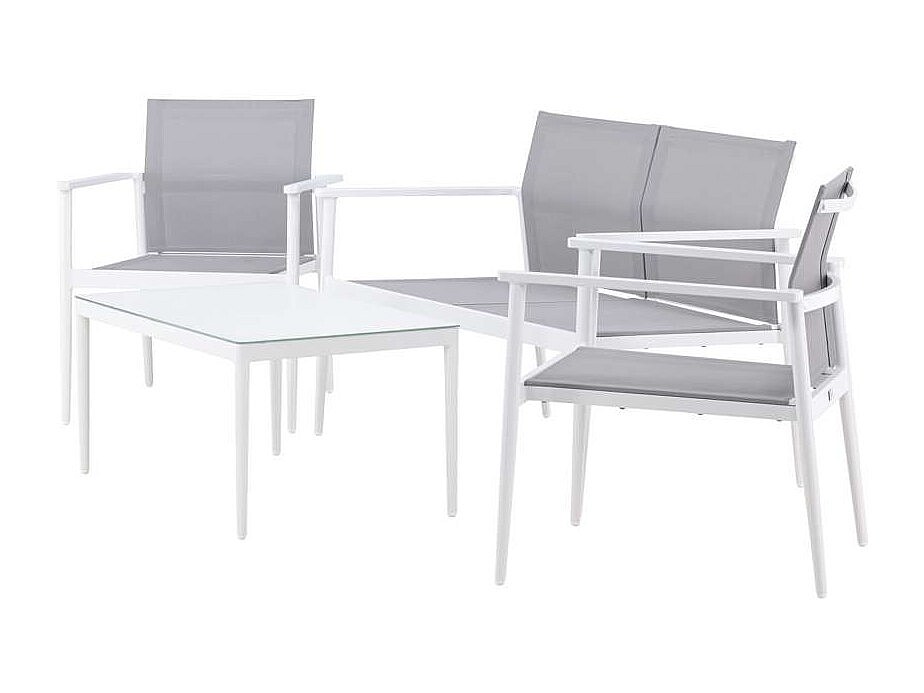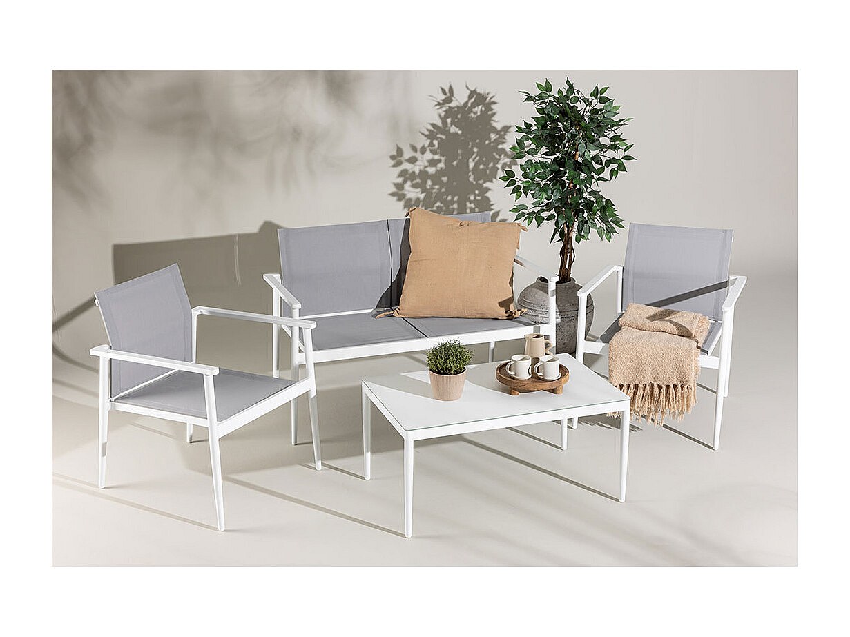 Loungeset van aluminium en wit & grijs staal LOLEA - Elegant design, afneembare kussens, 4 zitplaatsen, vierkante tafel