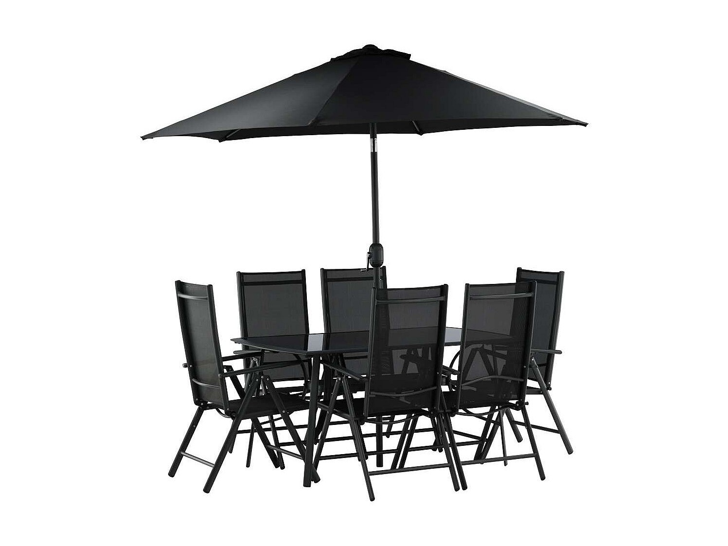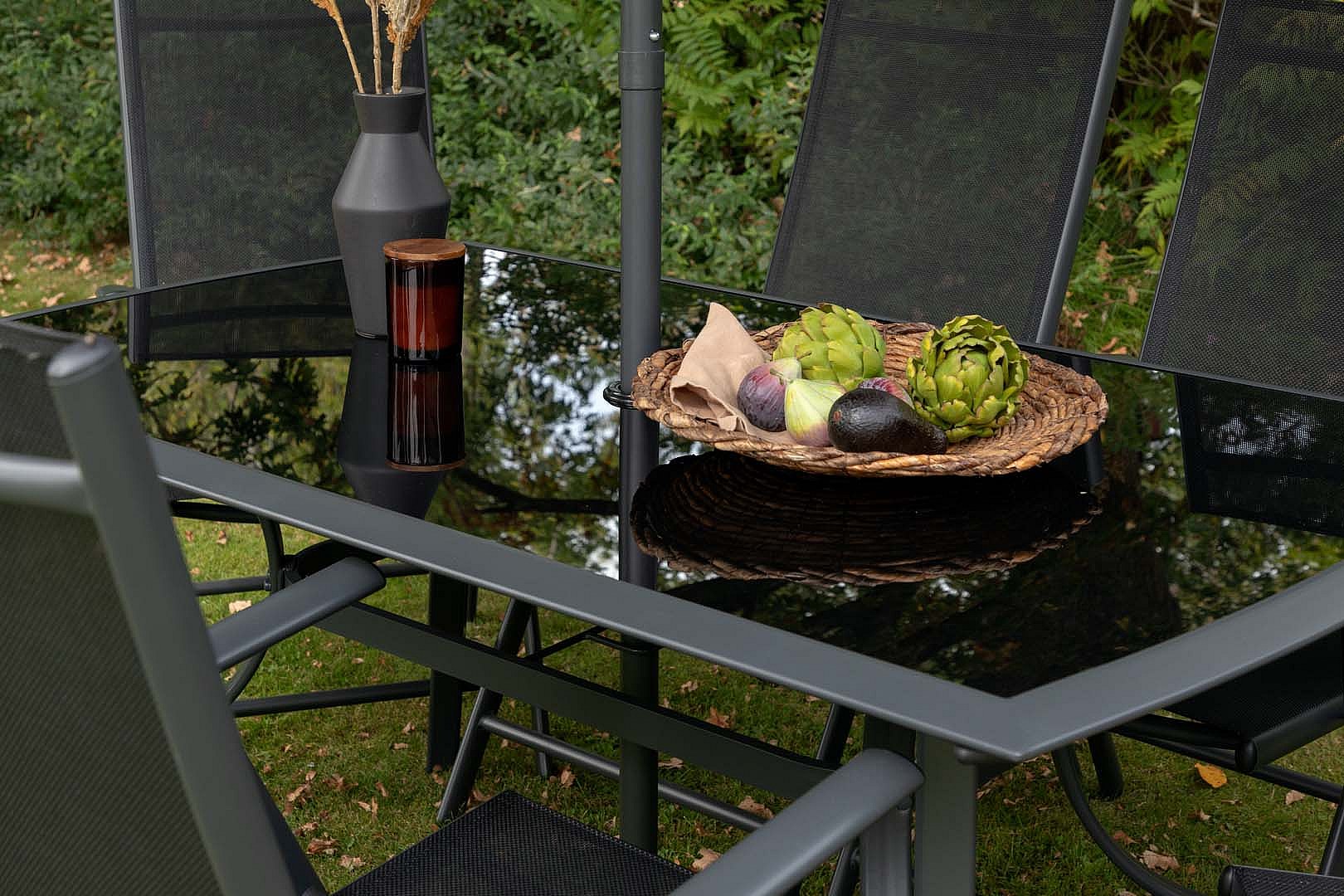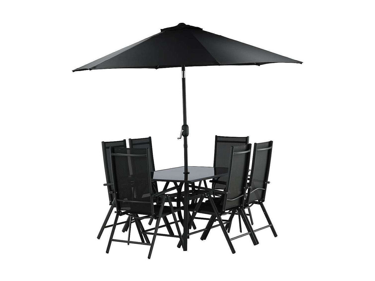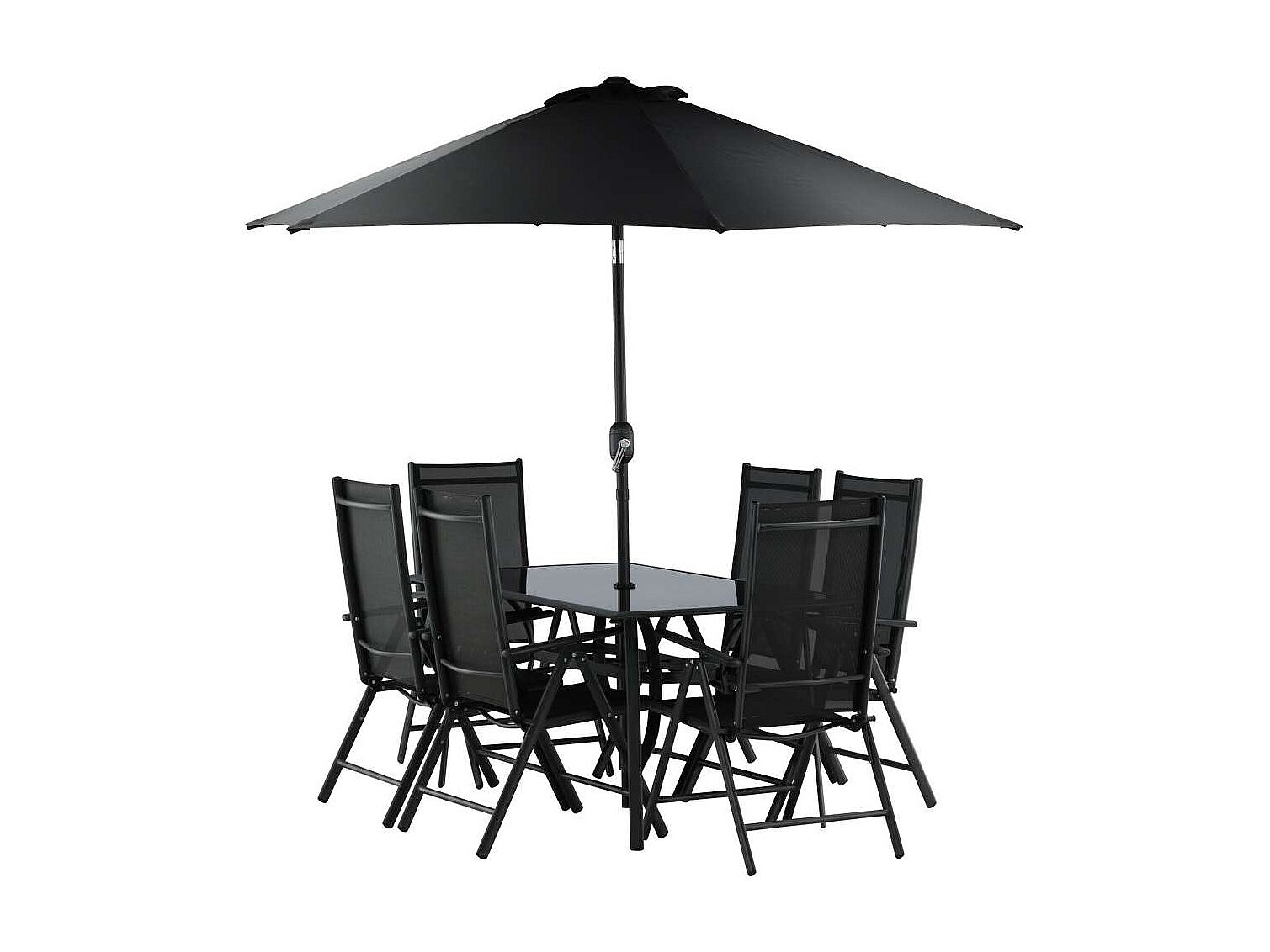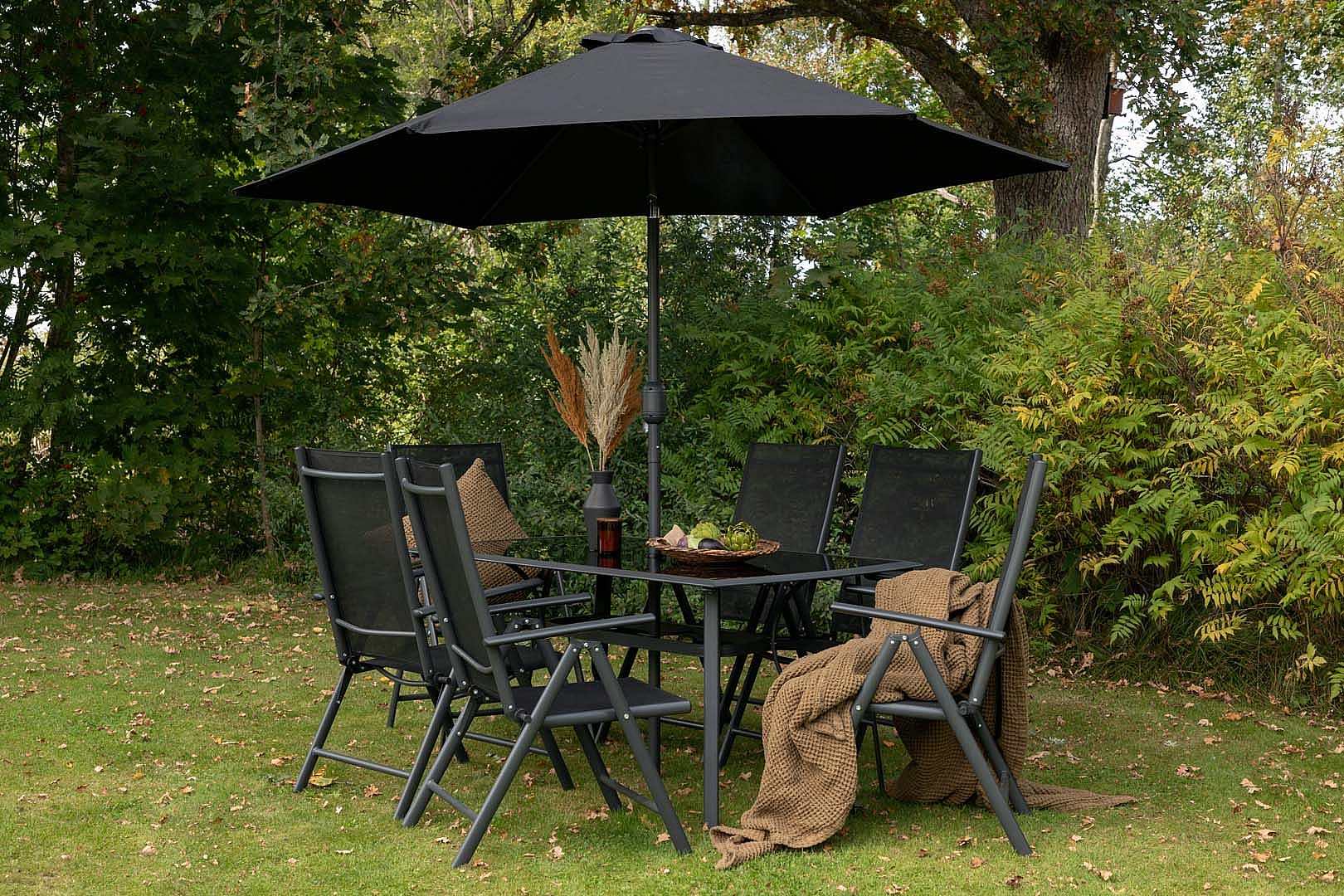 Brekki tuinmeubelset tafel 90x150cm zwart, 6 stoelen zwart.
