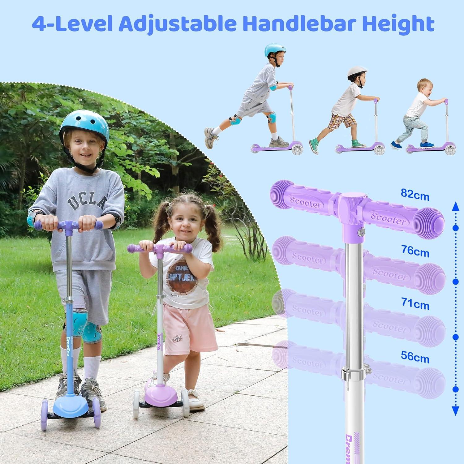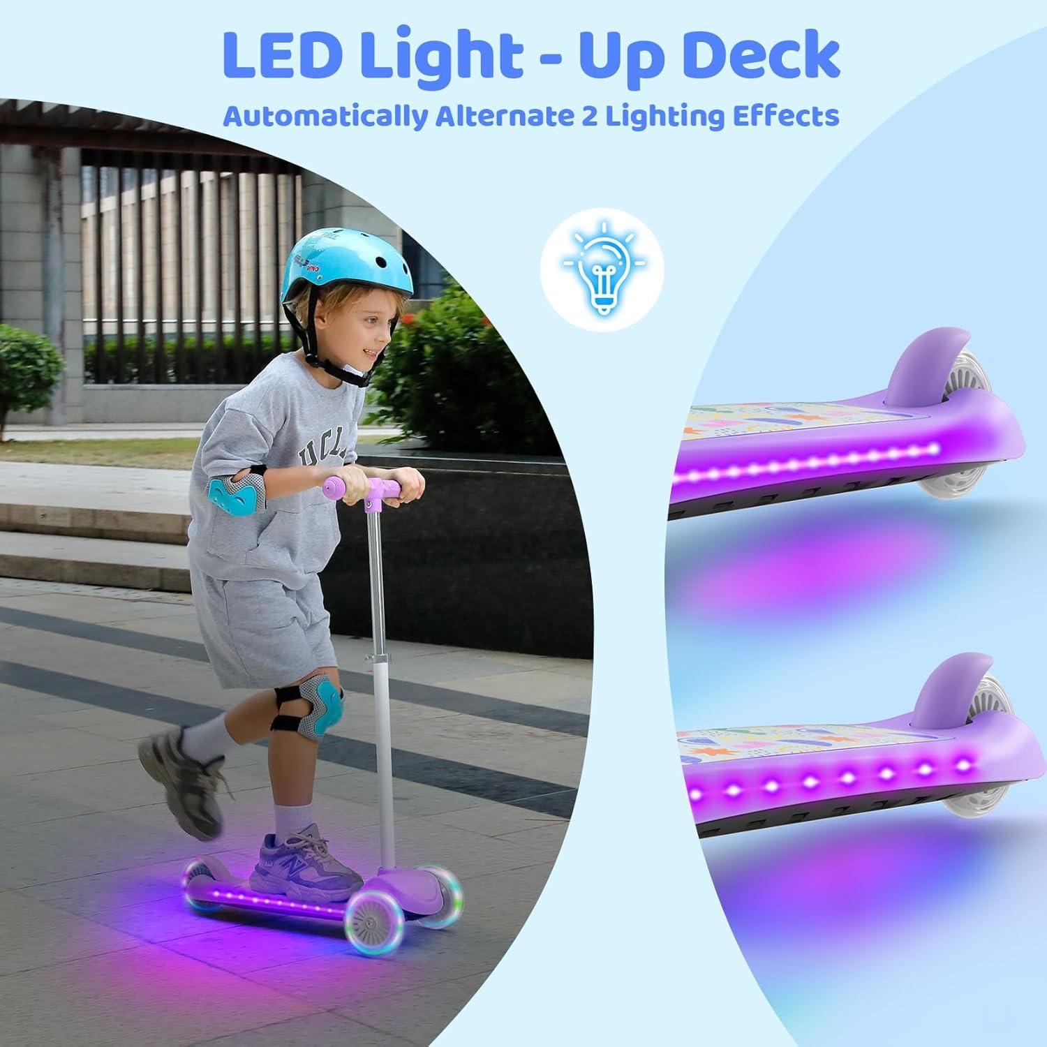 BremToy Kinderstep met Lichtgevend Deck en PU LED-wielen, 4 Traps Hoogteverstelling, Lichtgewicht, voor Beginners van 3-8 Jaar