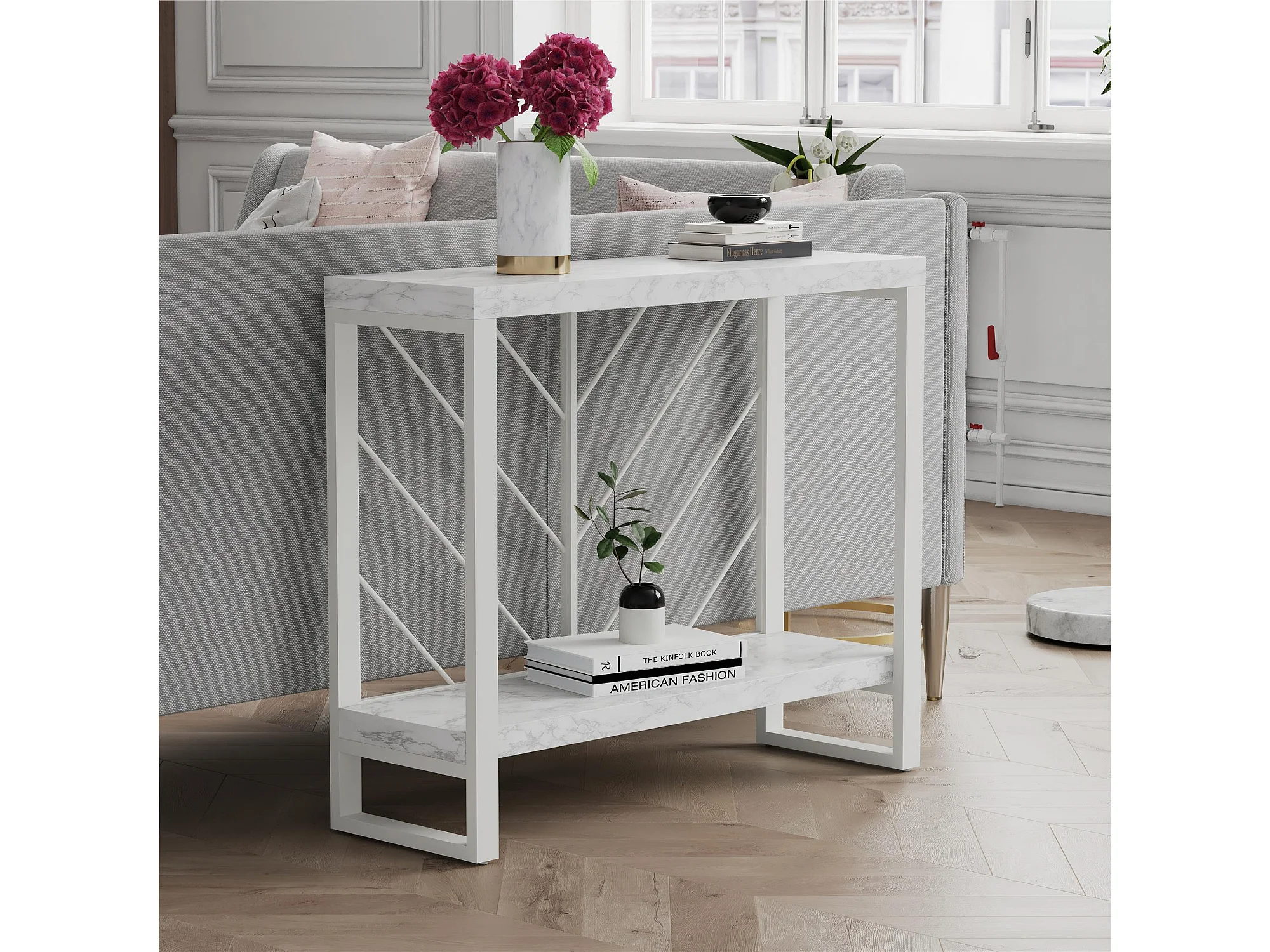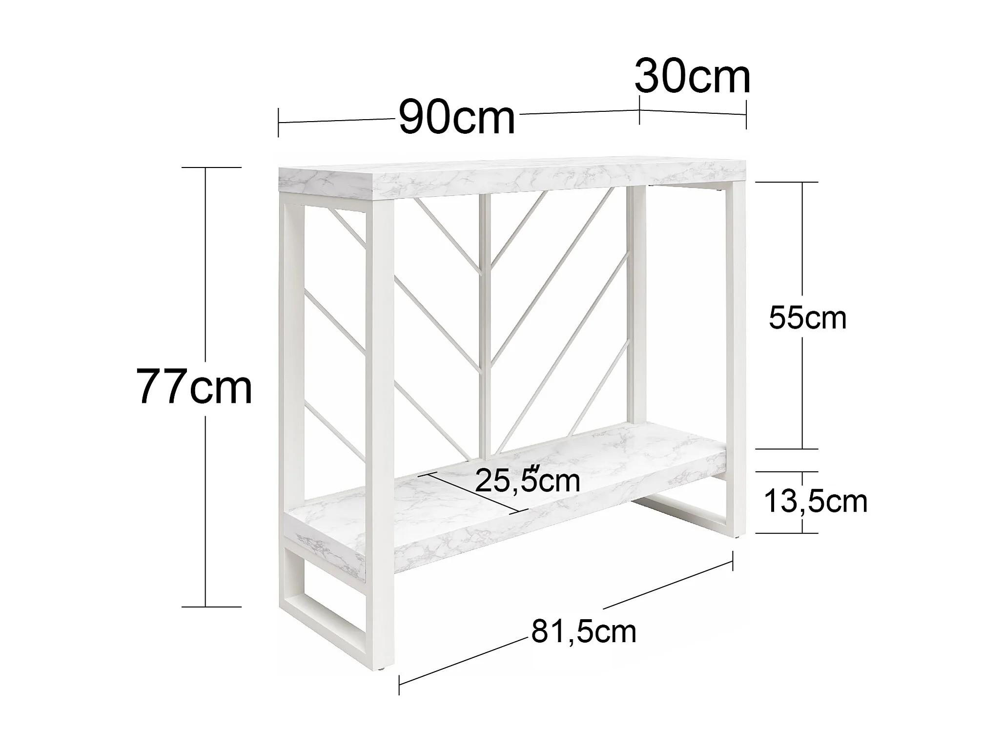 Brielle | Console tafel met 1 Plank in Wit Marmerlook