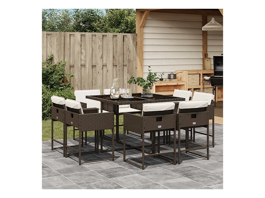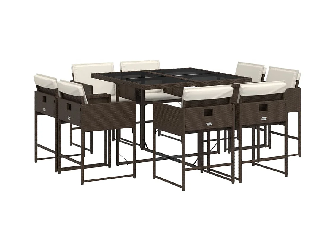 Emilia 9-delige Tuinset met kussens poly rattan bruin