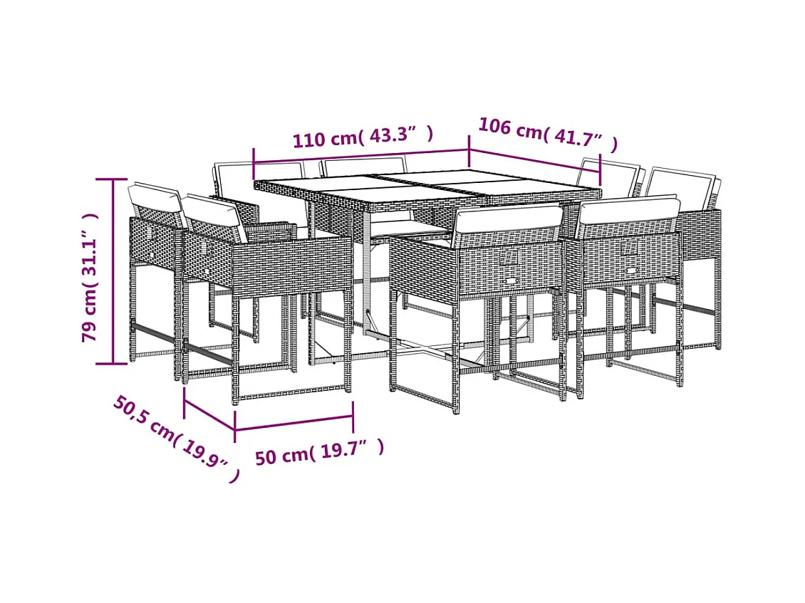 Maart 9-delige Tuinset met kussens poly rattan bruin