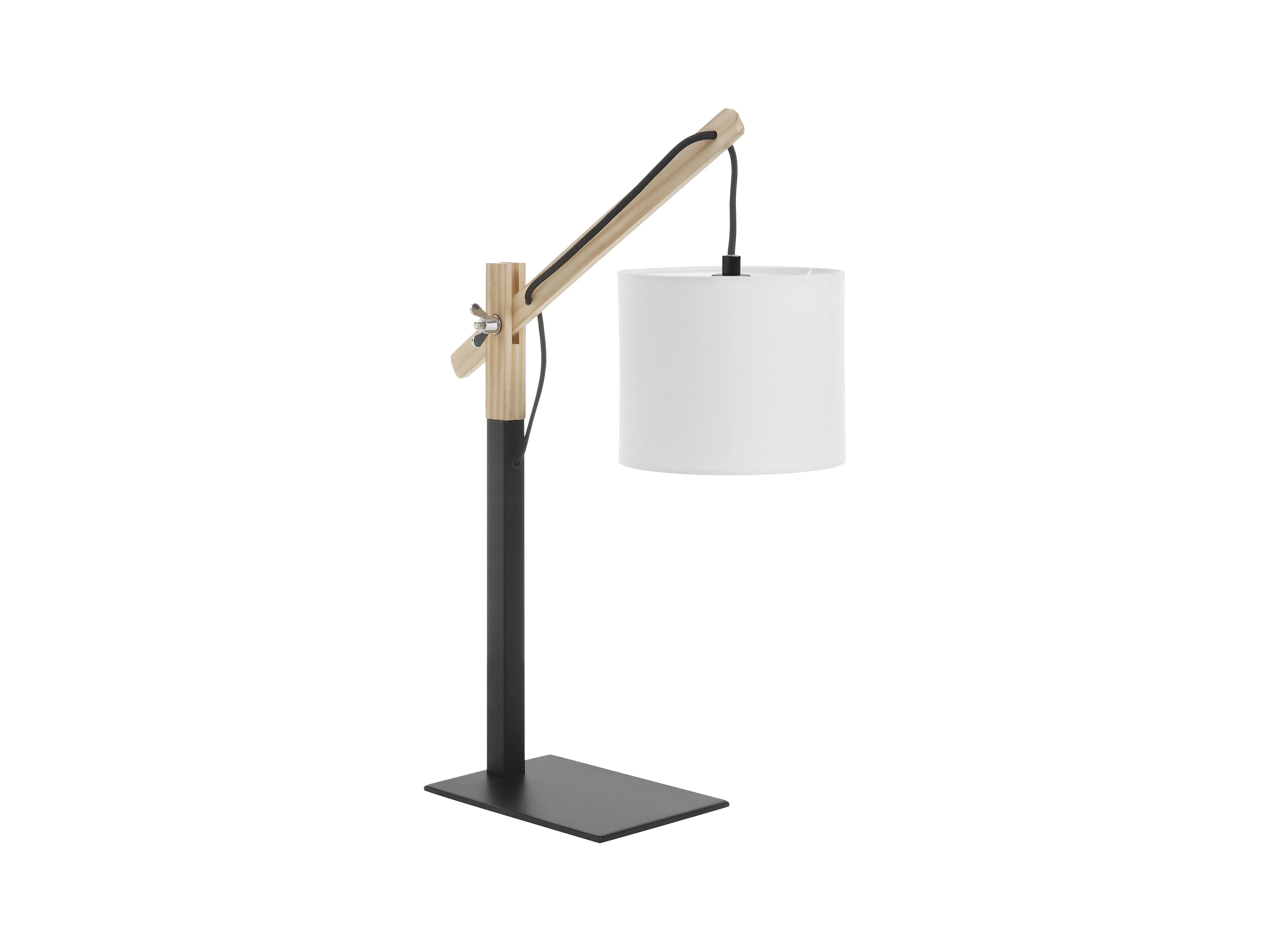 BRITTA moderne stijl tafellamp - Hoogte 45,5 cm - E27 60W - 90º graden - 2 meter kabel - aan&uit - staal en hout - zwart - witte katoenen lampenkap