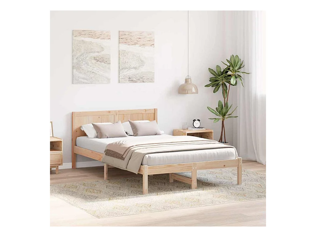 Bruin bedframe 140 x 190 cm massief grenenhout