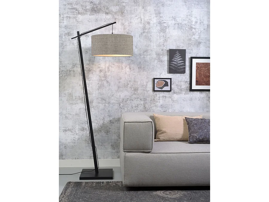 Bruine bamboe vloerlamp met donker linnen lampenkap