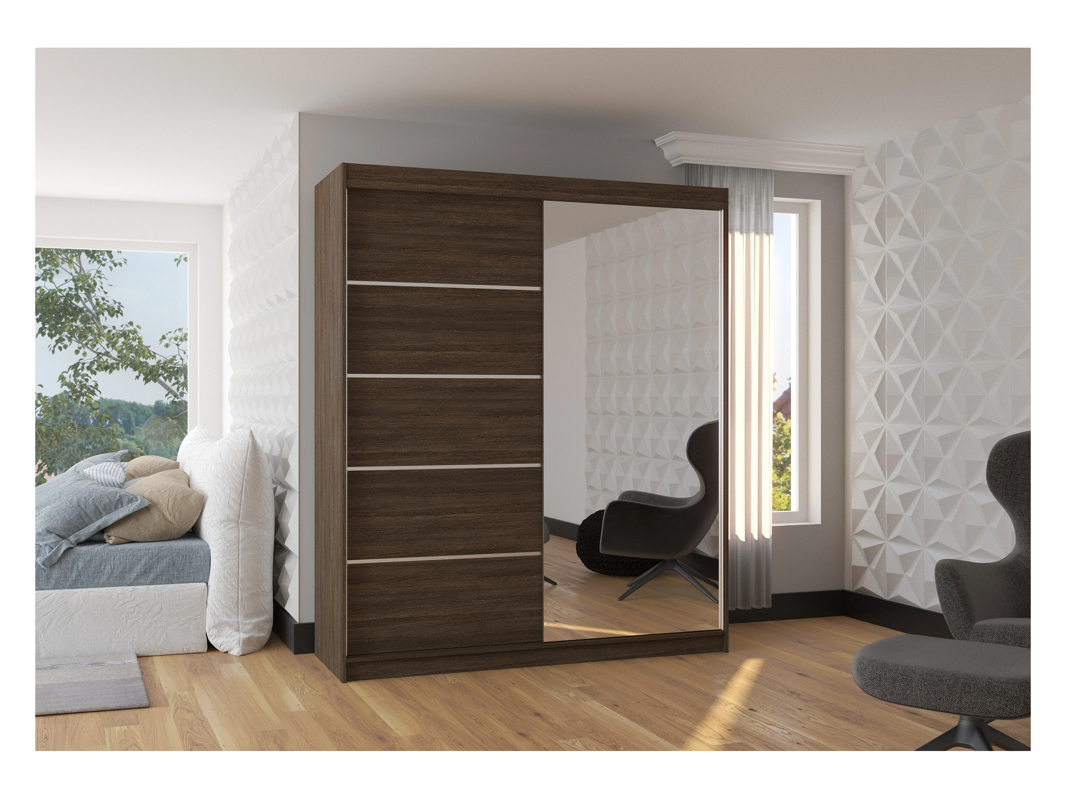 Slaapkamerkast 2 schuifdeuren 1 bruin en 1 spiegel Masso 180 cm