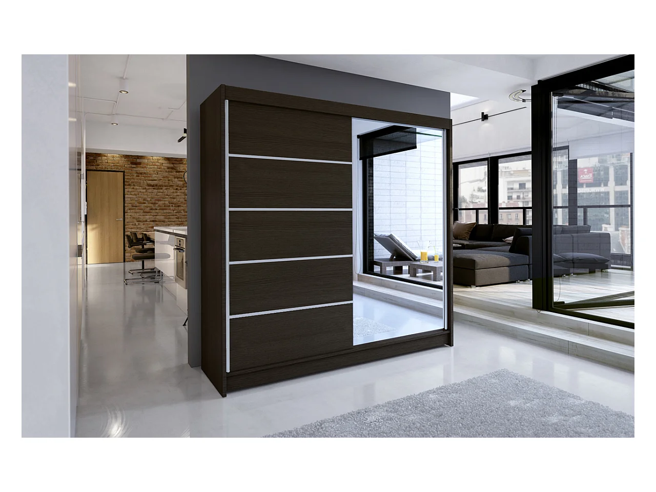 Slaapkamerkast 2 schuifdeuren 1 donker hout en 1 spiegel Limka 150 cm