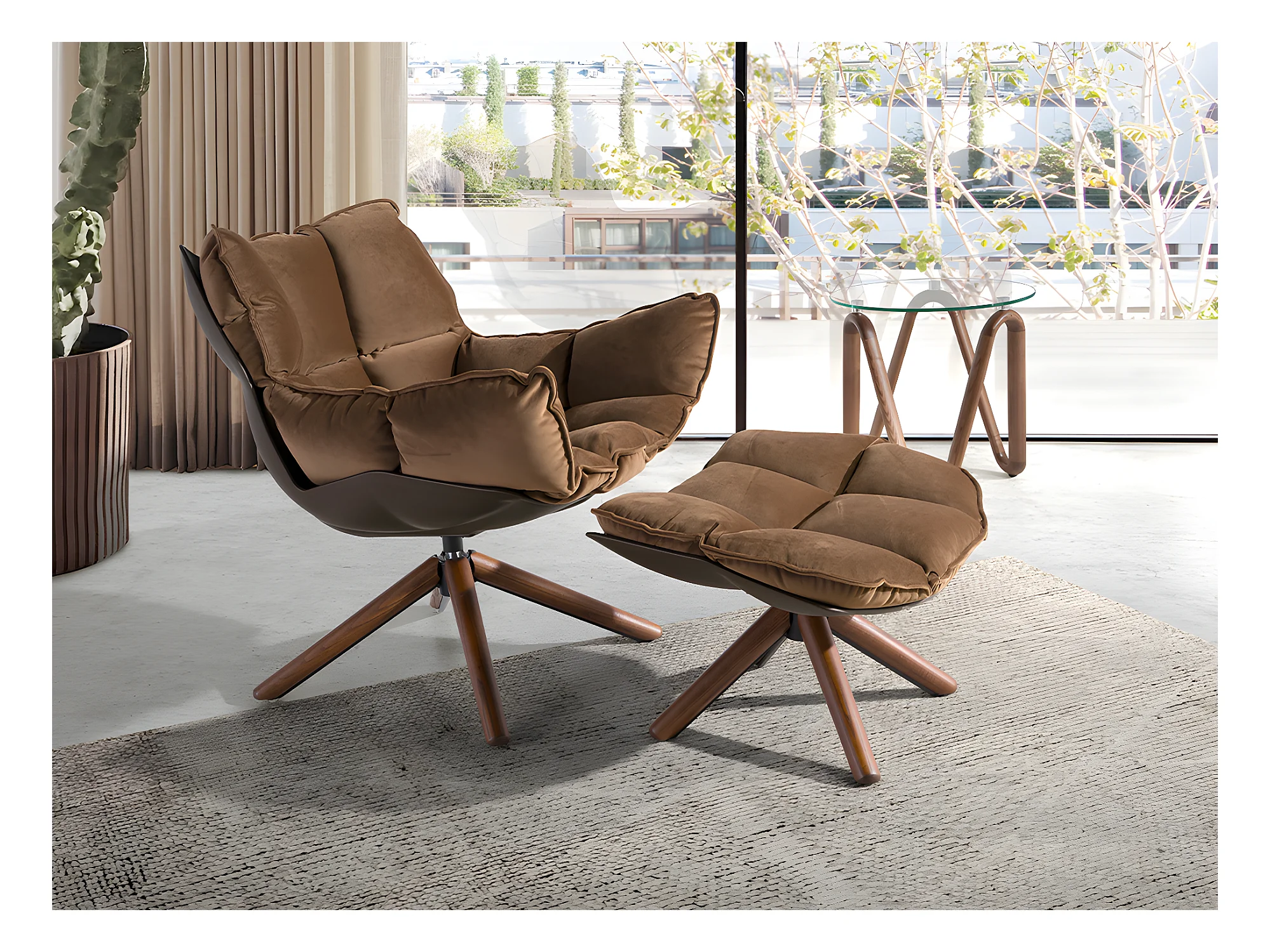 Bruine fluwelen en bruine pvc draaifauteuil 5104 ANGEL CERDA