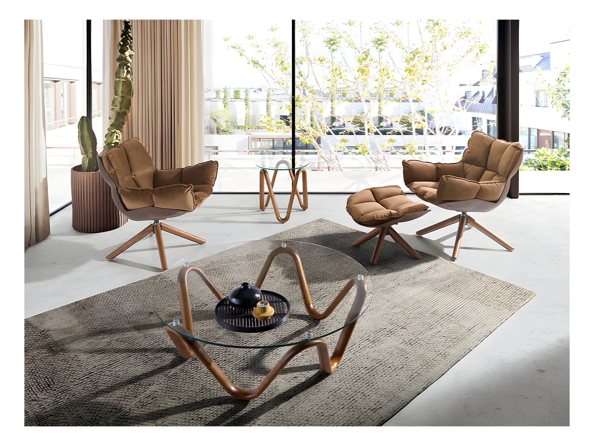 Ronde hoektafel van gehard glas en walnoot 2126 ANGEL CERDA
