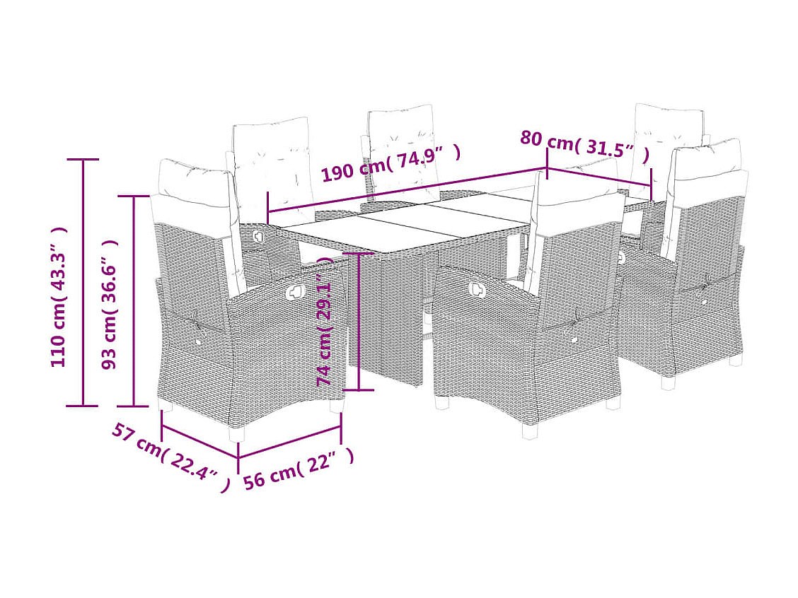 Thomian 7-delige Tuinset met kussens poly rattan grijs