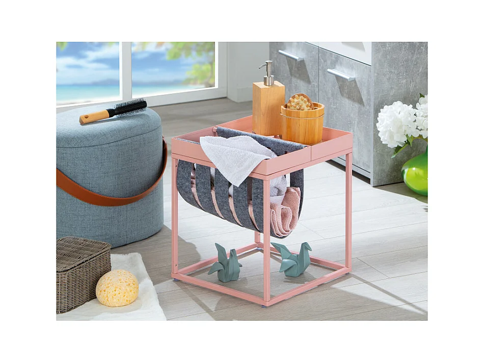 Bijzettafel Jaipur, Roze MDF-blad, Metalen frame