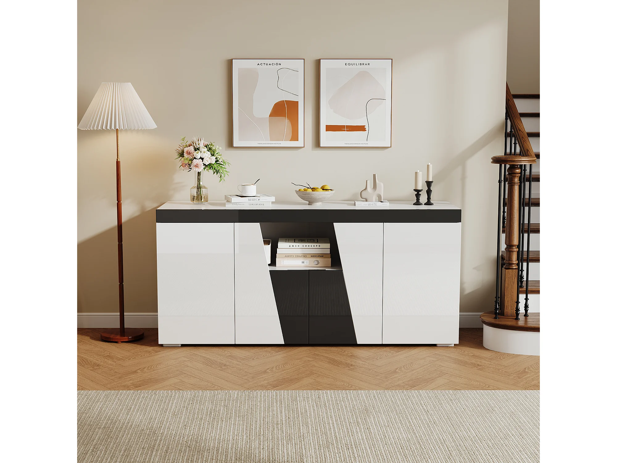 Scandinavisch dressoir met 2 lades en 2 deuren, 140 cm – Hout en wit